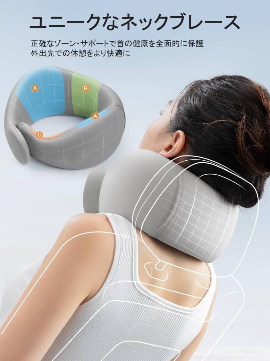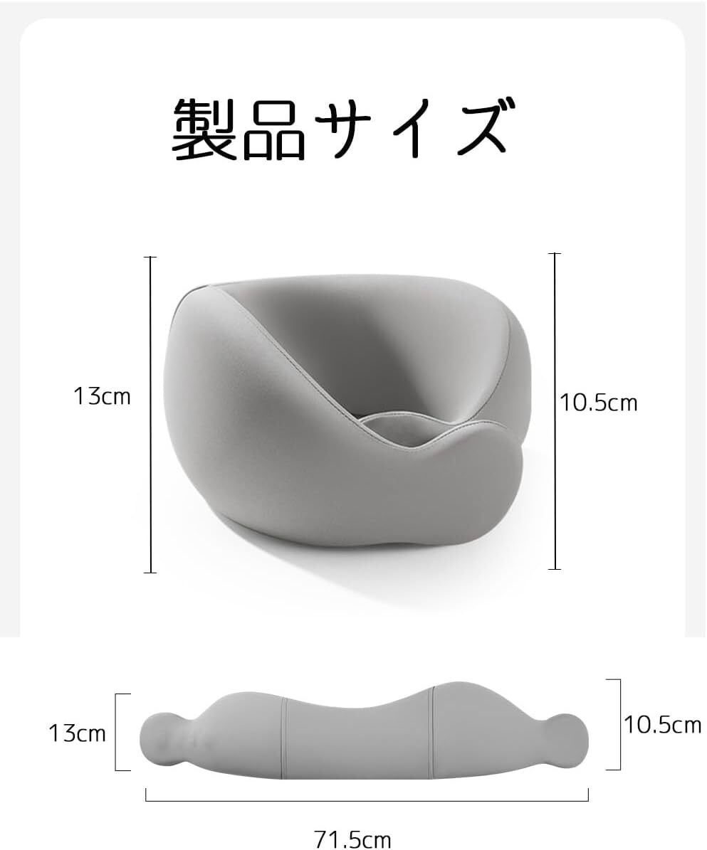 ・アゴから耳うしろに向かって立ち上がる形状が、後頭部を支えて、長時間過ごせる自然なポジションにします。高い通気性の生地を使用し、効率よく空気が出入りするので、首まわりが蒸れにくく、快適な睡眠時間を過ごせます。