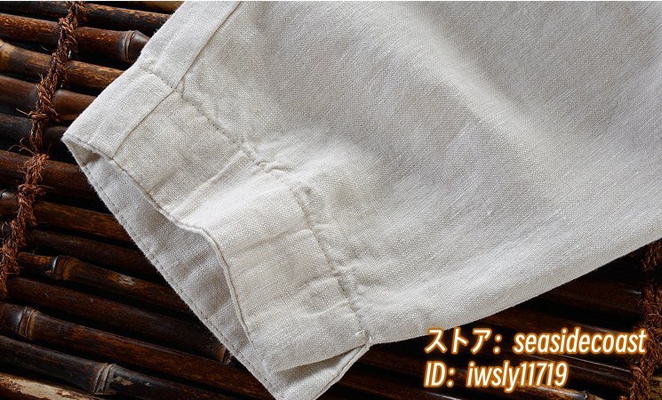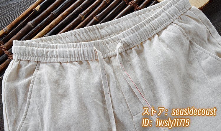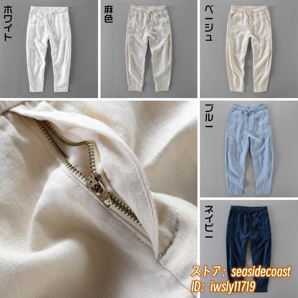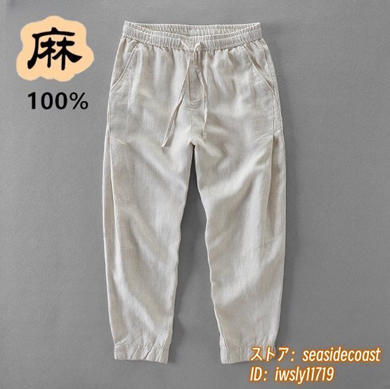 夏新品★リネンパンツ メンズ チノパン 麻100% 通気 サルエルパンツ イージーパンツ 紳士 サマーパンツ 無地 リブパンツ 五色 麻色 36