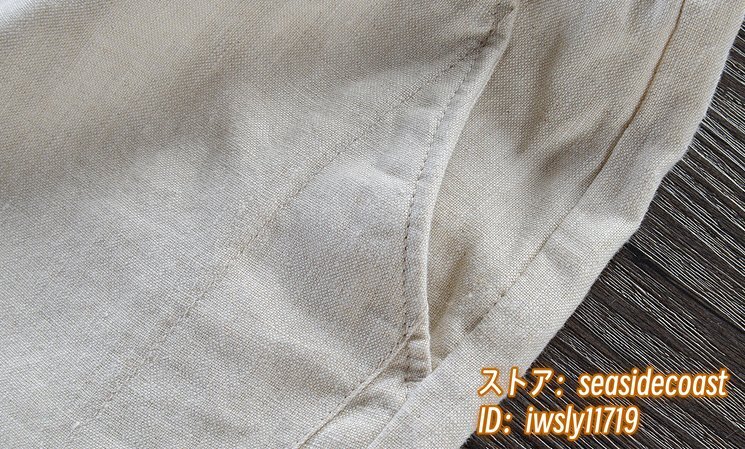 通気性に優れた清涼感を感じさせる薄手のリネン混パンツの出品です。