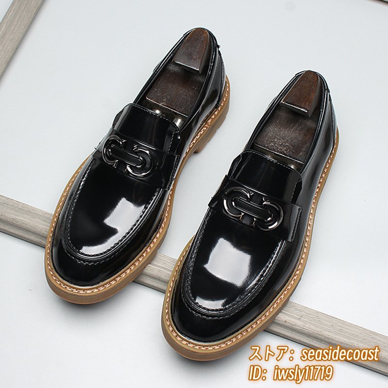 定価11万★最高級 ビジネスシューズ 牛革 レザーシューズ 超美 メンズ 本革 ローファー職人手作り スリッポン 通勤 結婚式 ブラック 25.0cm