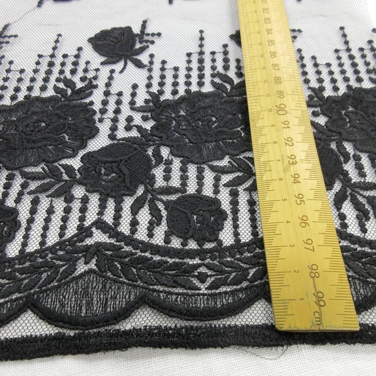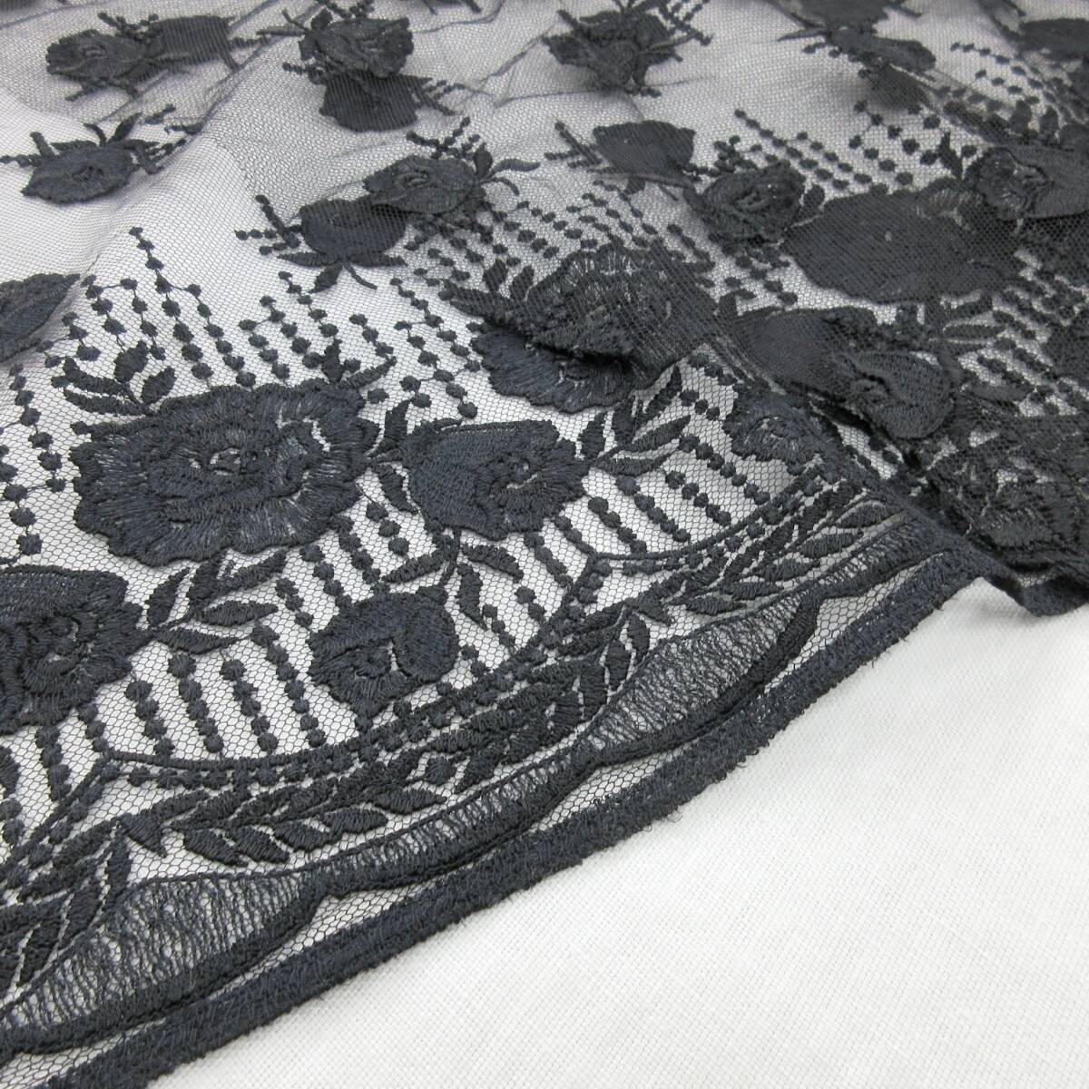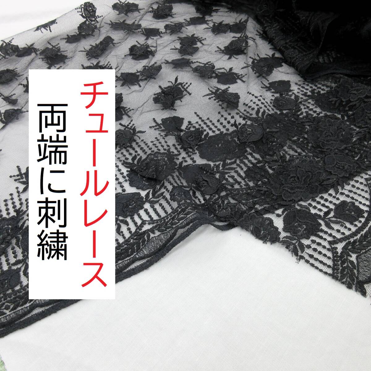 ★2m★チュールレース★両端に刺繍★ゴシック風★黒★LF-45120-24SS★ハンドメイド★現品1点限り★生地★布★洋裁★新品★同梱発送可能★
