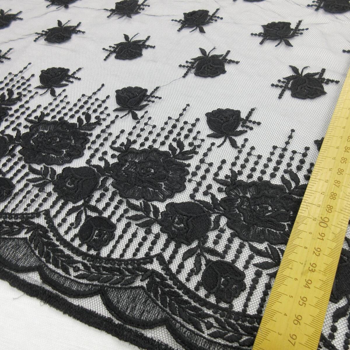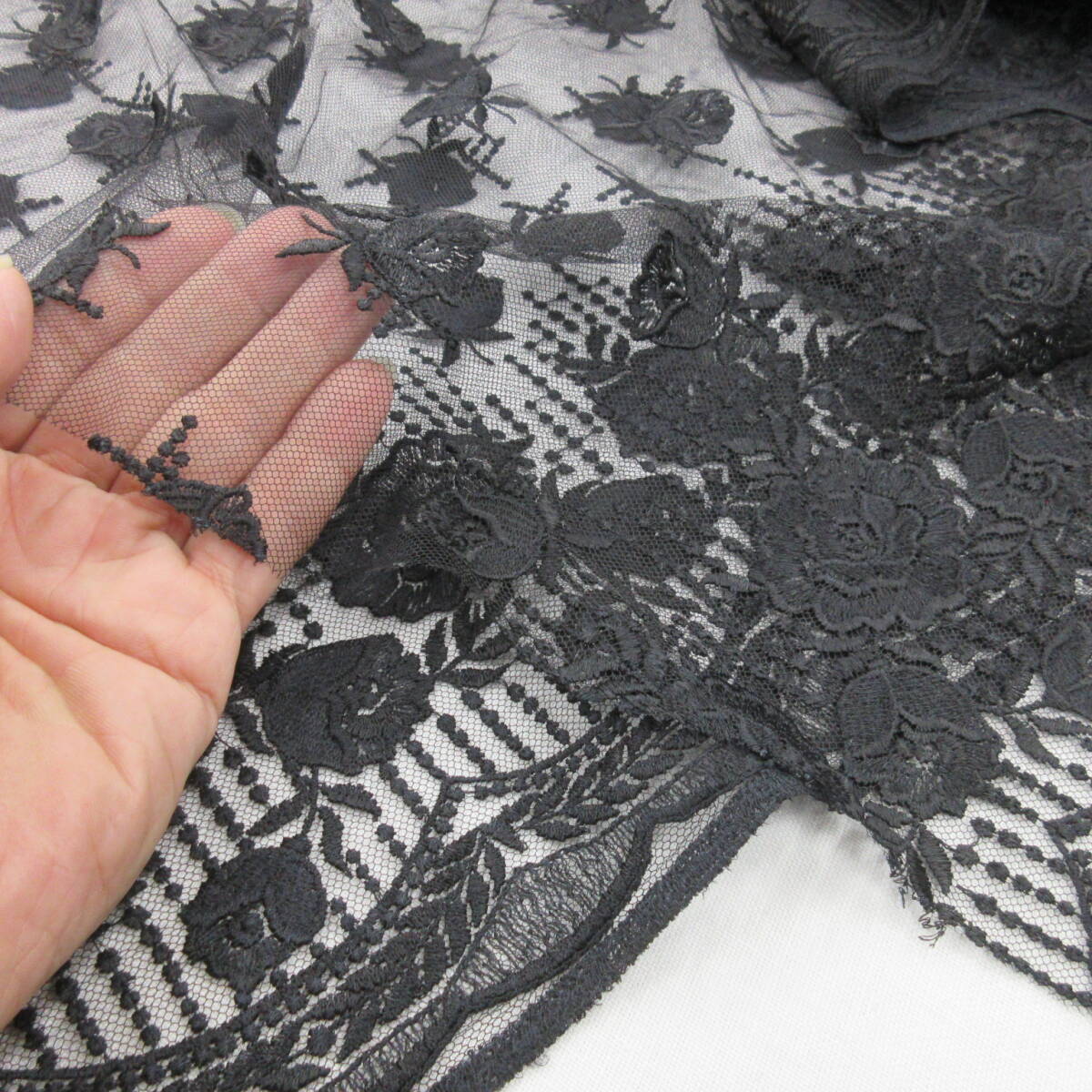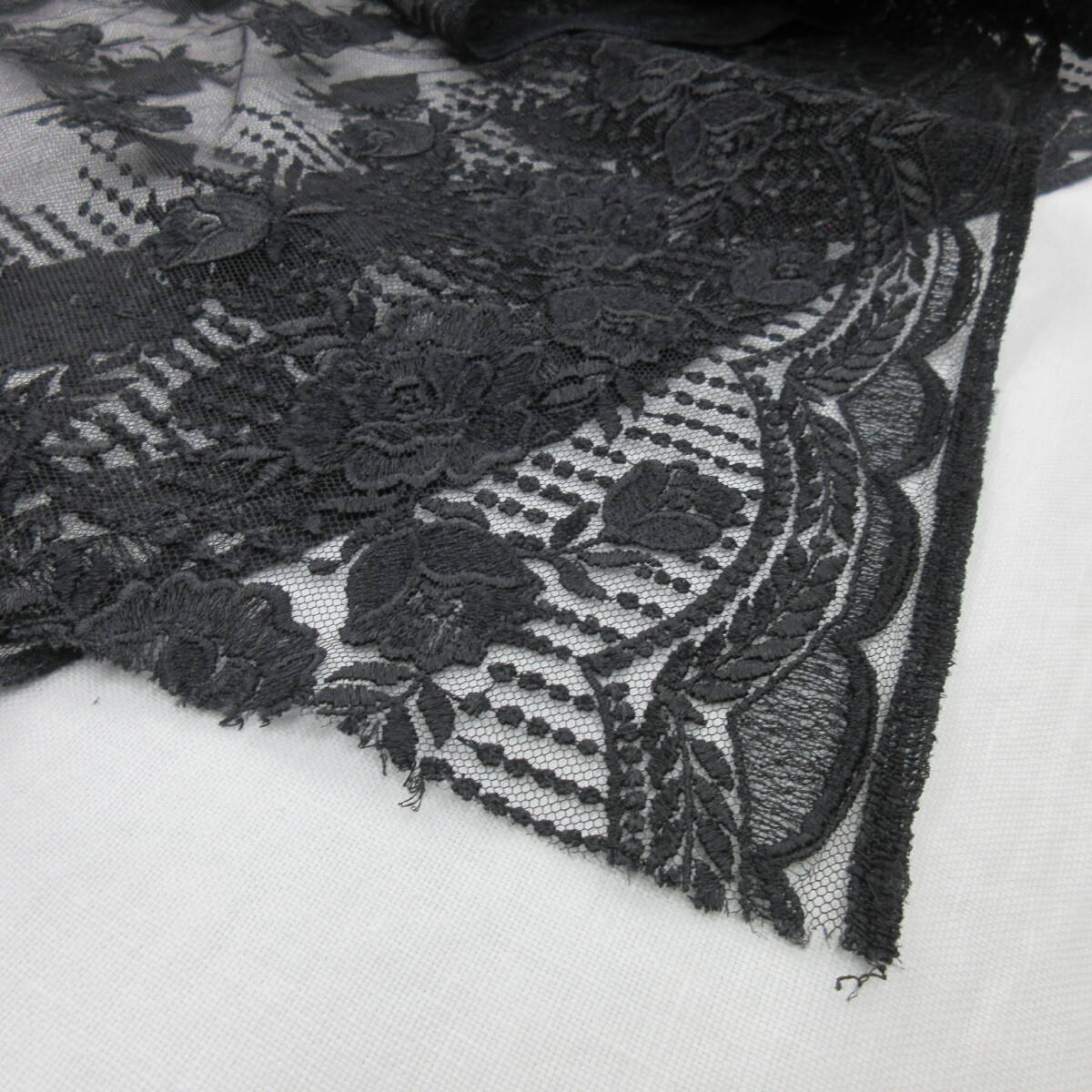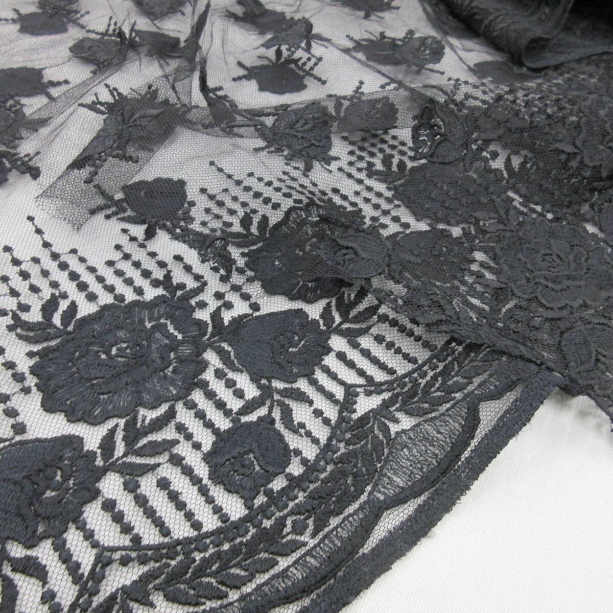 ★2m★チュールレース★両端に刺繍★ゴシック風★黒★LF-45120-24SS★ハンドメイド★現品1点限り★生地★布★洋裁★新品★同梱発送可能★