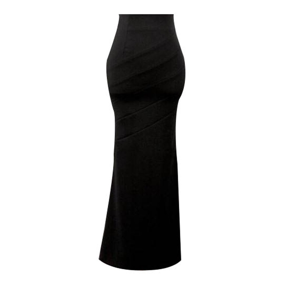 タイトスカート ロング丈 無地 ストレッチ性生地 バックファスナー付き ハイウェスト レディース ブラック M
