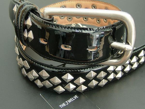 新品 THE TWELVEザ・トゥエルヴ エナメル本革チェーン黒ベルト H652