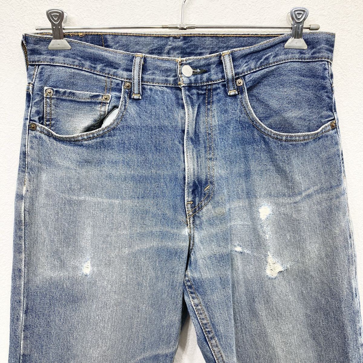 太ももやヒップポケット部分・裾にダメージがあります。