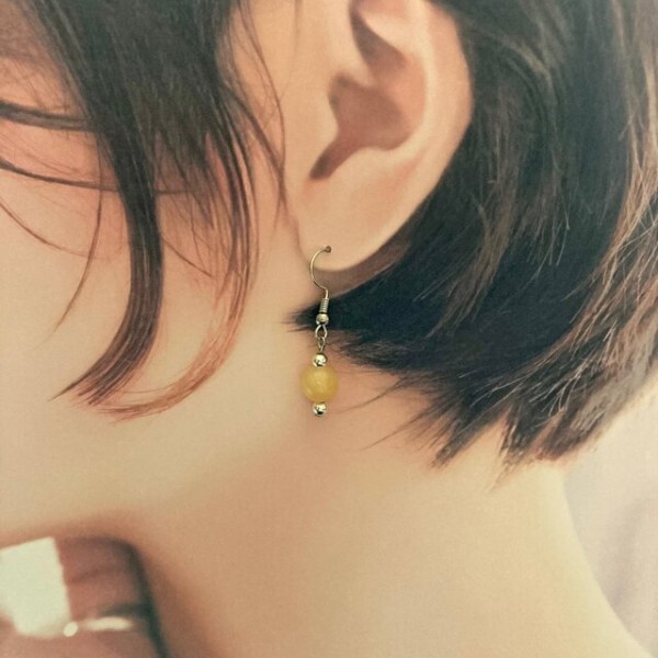 こちらは、8mm玉のアラゴナイトを使用した一粒フックピアスです。シンプルなデザインはシーン問わず、どんなコーディネートにも合わせ易く使い勝手がいいアイテムです。今回は一粒ピアスの要望が多かった為制作しました。気になる方は是非この機会にどうぞ。
