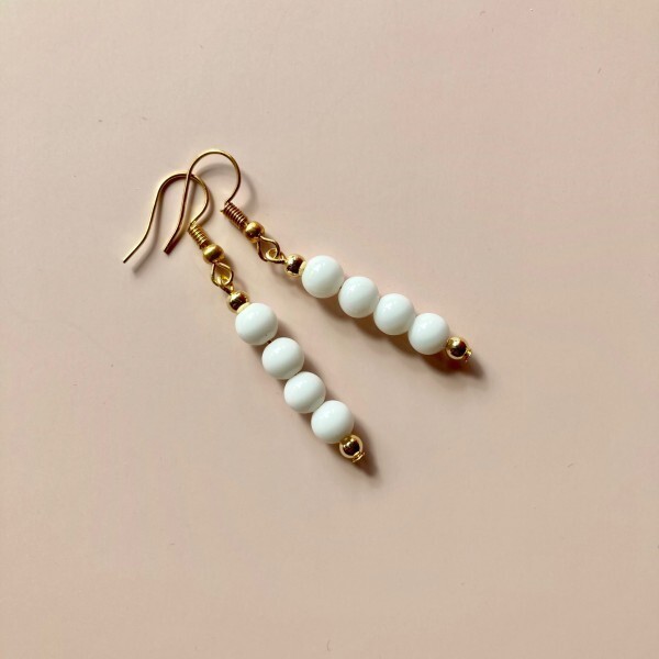 ホワイトオニキスピアス フックピアス 6mm (ゴールド) イヤリング、樹脂フック変更可 樹脂ピアス シンプル ハンドメイド