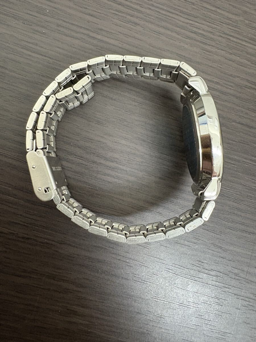 天然ダイヤモンドがキラリと輝く、シンプルながらもシックです大人っぽい時計です。