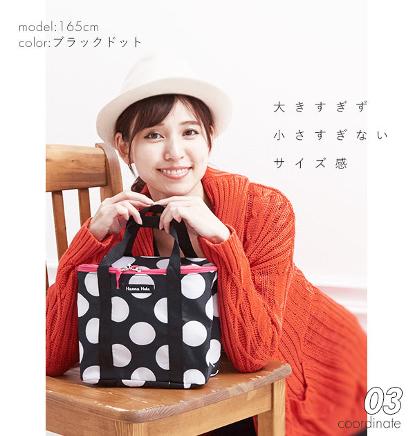 商品説明 | ・・ポップな柄のデザインが可愛いハンナフラの保温保冷バッグ☆ 通勤通学時のお弁当箱の持ち運びや、ピクニック等のレジャーにも大活躍です! たっぷりとしたマチがあるので、500mlのペットボトルなら6本も収納できるたっぷりサイズ!温かいものも冷たいものもたくさん入る、オールシーズン仕様のバッグです。 |