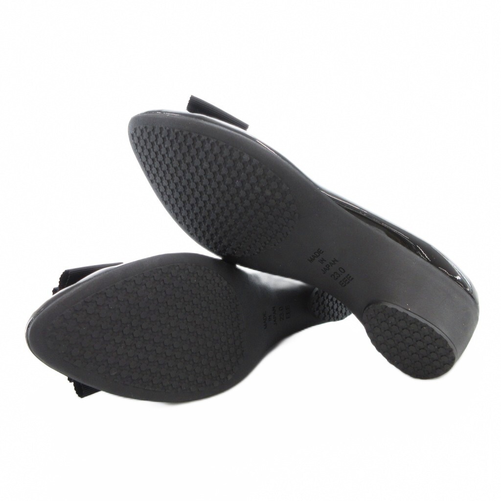 ヒラリドットトーキョウ hirari.tokyo リボンパンプス バレエシューズ フラット エナメル 23cm 黒 ブラック /GV レディース