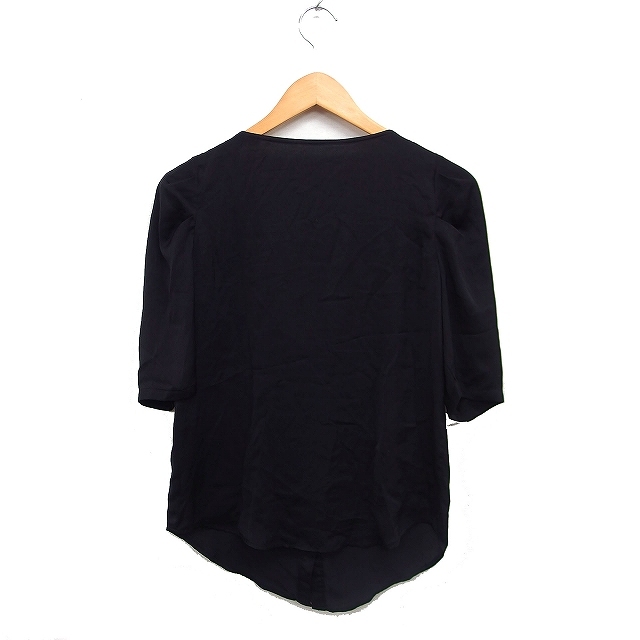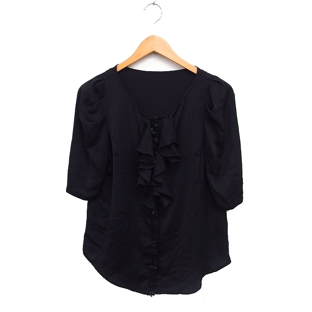 スマッキーグラム SmackyGlam フリル ブラウス 5分袖 ビーズ装飾 無地 4 ブラック 黒 /FT17 レディース