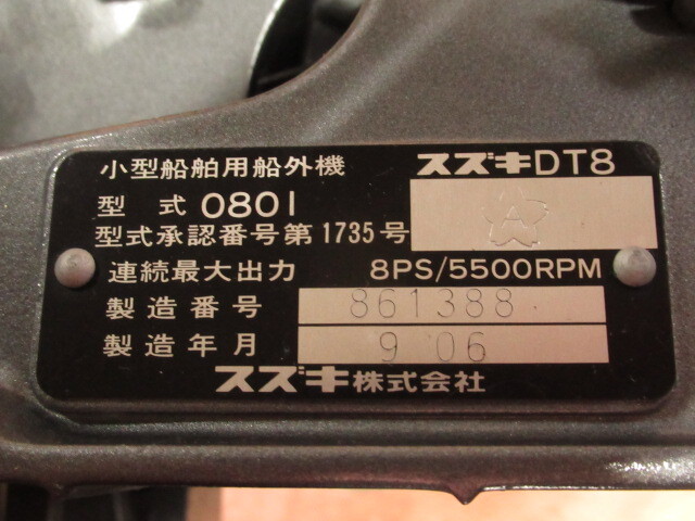SUZUKI スズキ DT8 0801 小型船舶用船外機 8PS / 5500RPM 現状品 管理7KX0925E-oogata