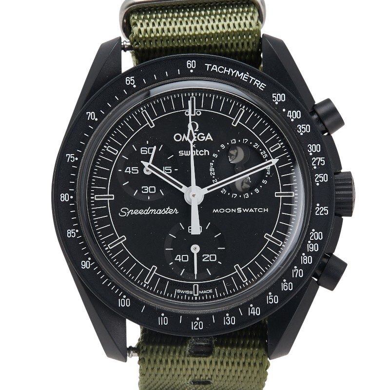 オメガ ×スウォッチ スヌーピー ムーンスウォッチ MISSION TO THE MOON PHASE ベルト(社外品)SO33B700 ブラック文字盤 OMEGA 【中古】