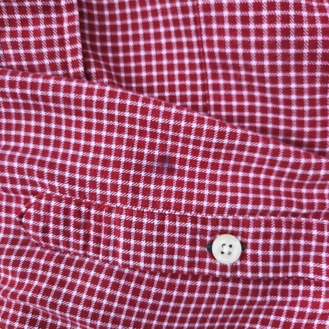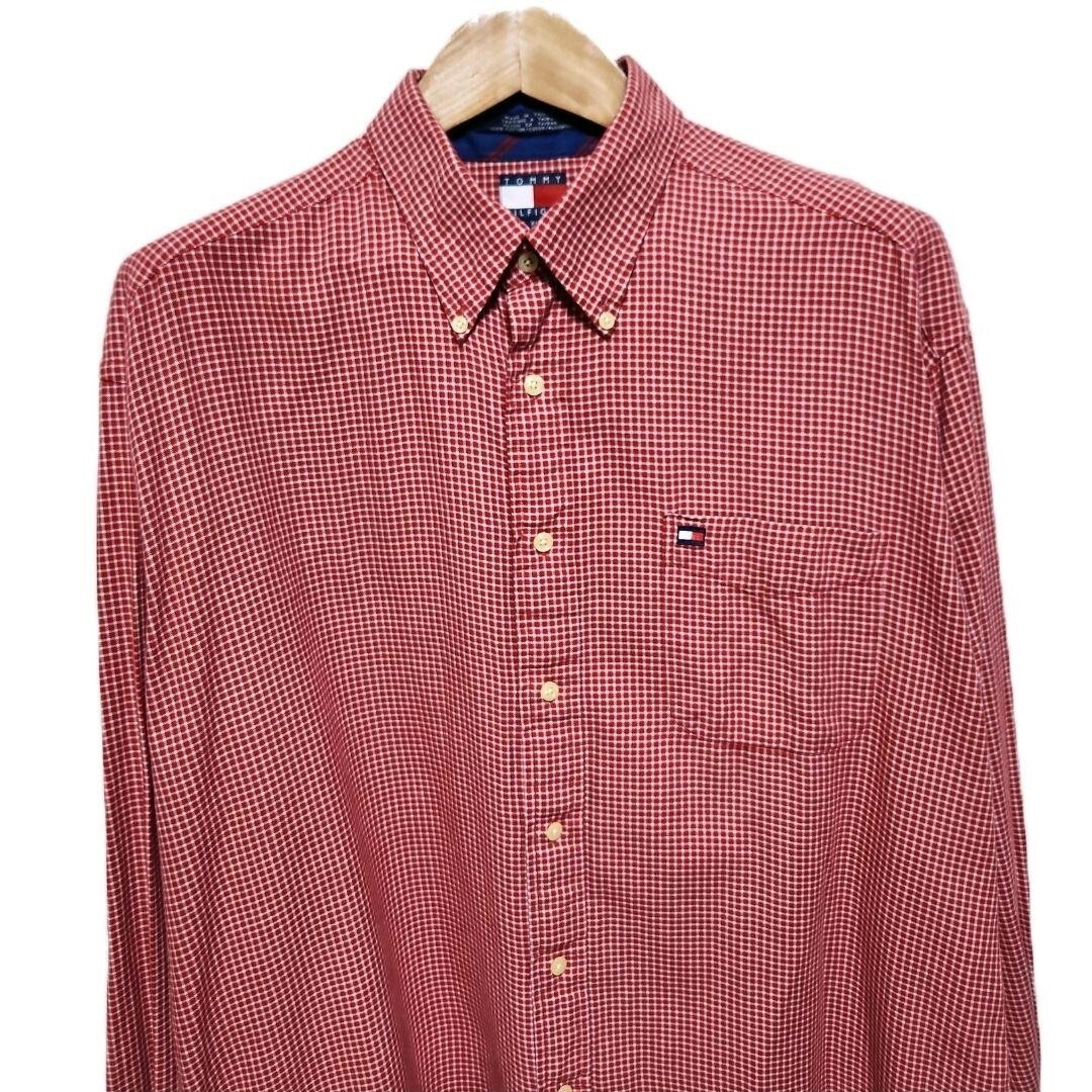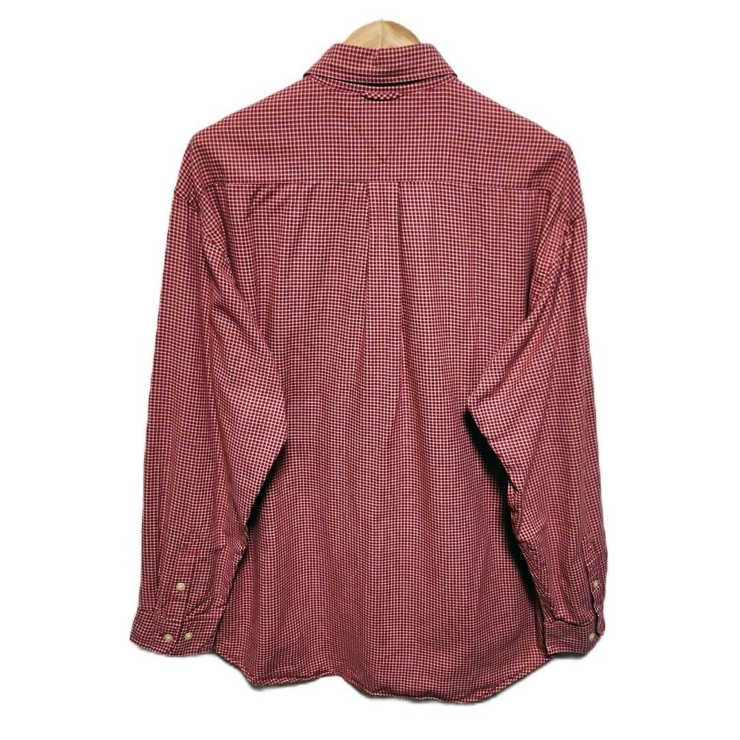 90s TOMMY HILFIGER 赤白チェック 長袖ボタンダウンシャツ XL