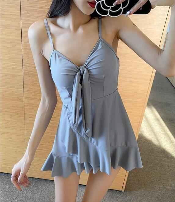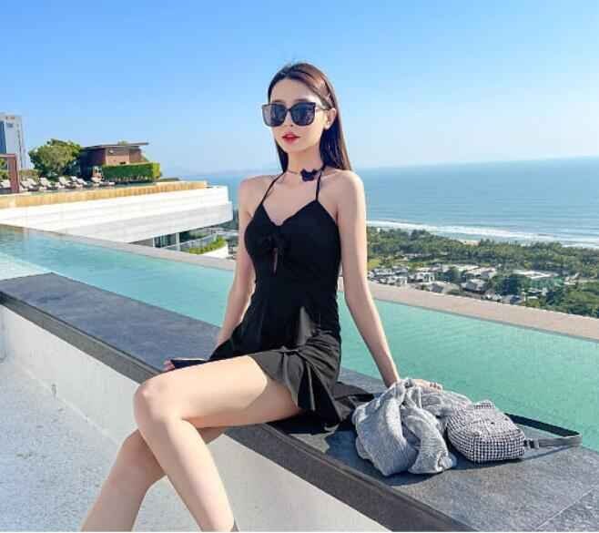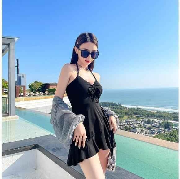 レディース 体型カバー 水着 オールインワン ワンピース水着 スカート水着 フリル スイムウェア XL ブラック