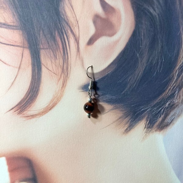 こちらは、8mm玉のレッドタイガーアイを使用した一粒フックピアスです。シンプルなデザインはシーン問わず、どんなコーディネートにも合わせ易く使い勝手がいいアイテムです。今回は一粒ピアスの要望が多かった為制作しました。気になる方は是非この機会にどうぞ。