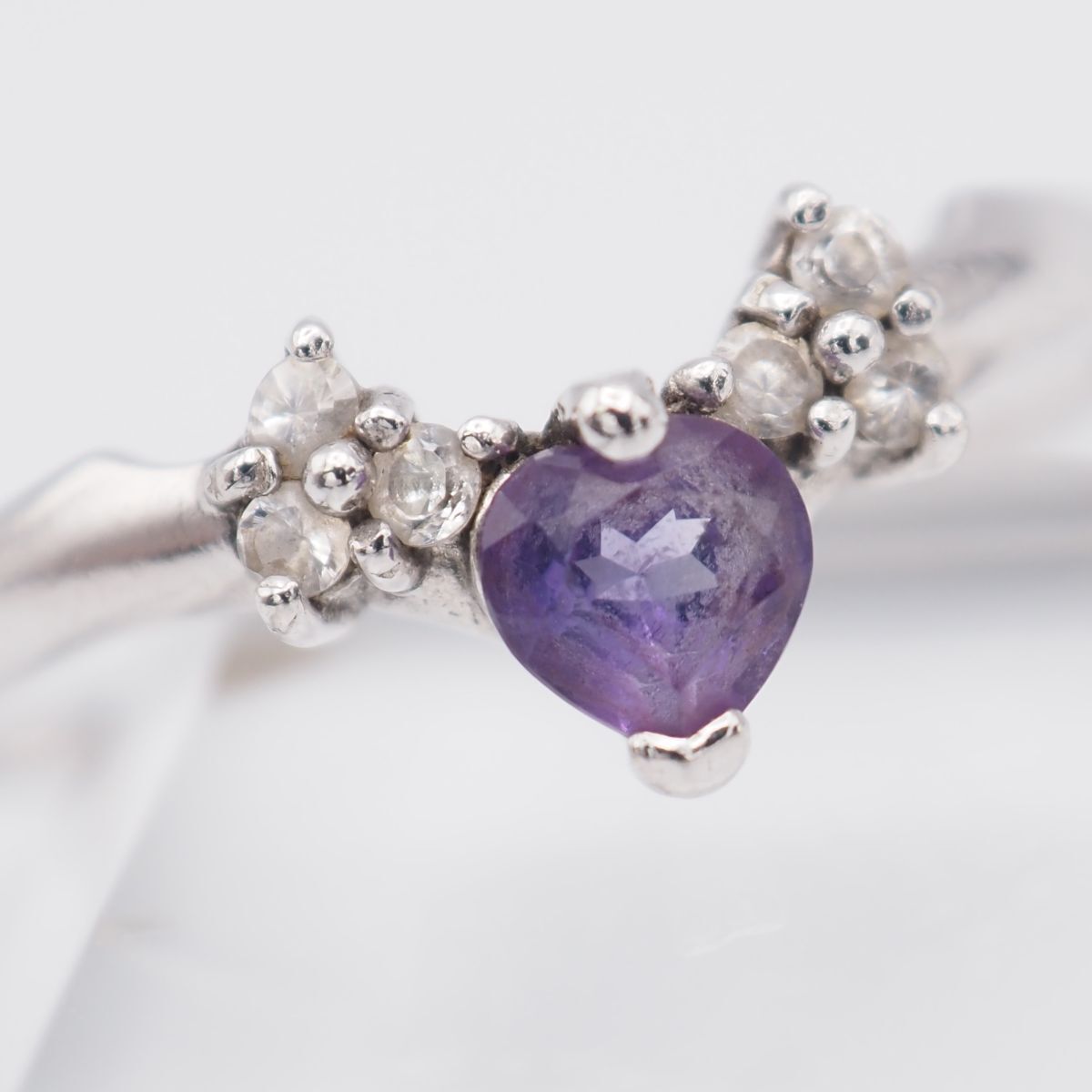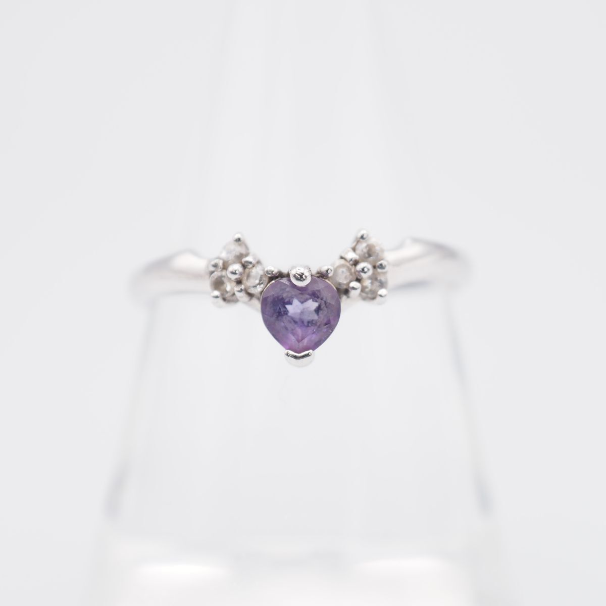 F843 アメジスト ダイヤモンド風 925F刻印 リング デザイン シルバー 指輪 2月誕生石 14号