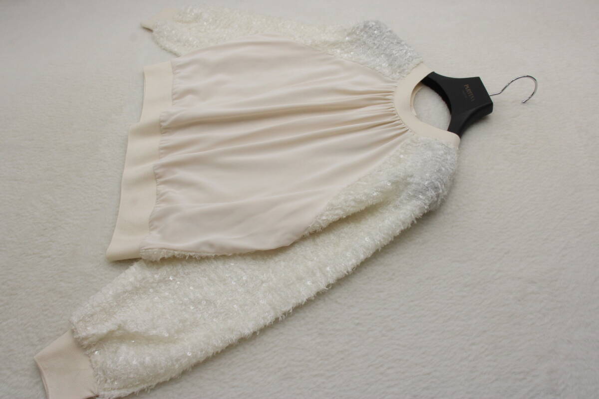 4629 新品 2WAYスパンコール使い切替カットソー フリー ホワイト