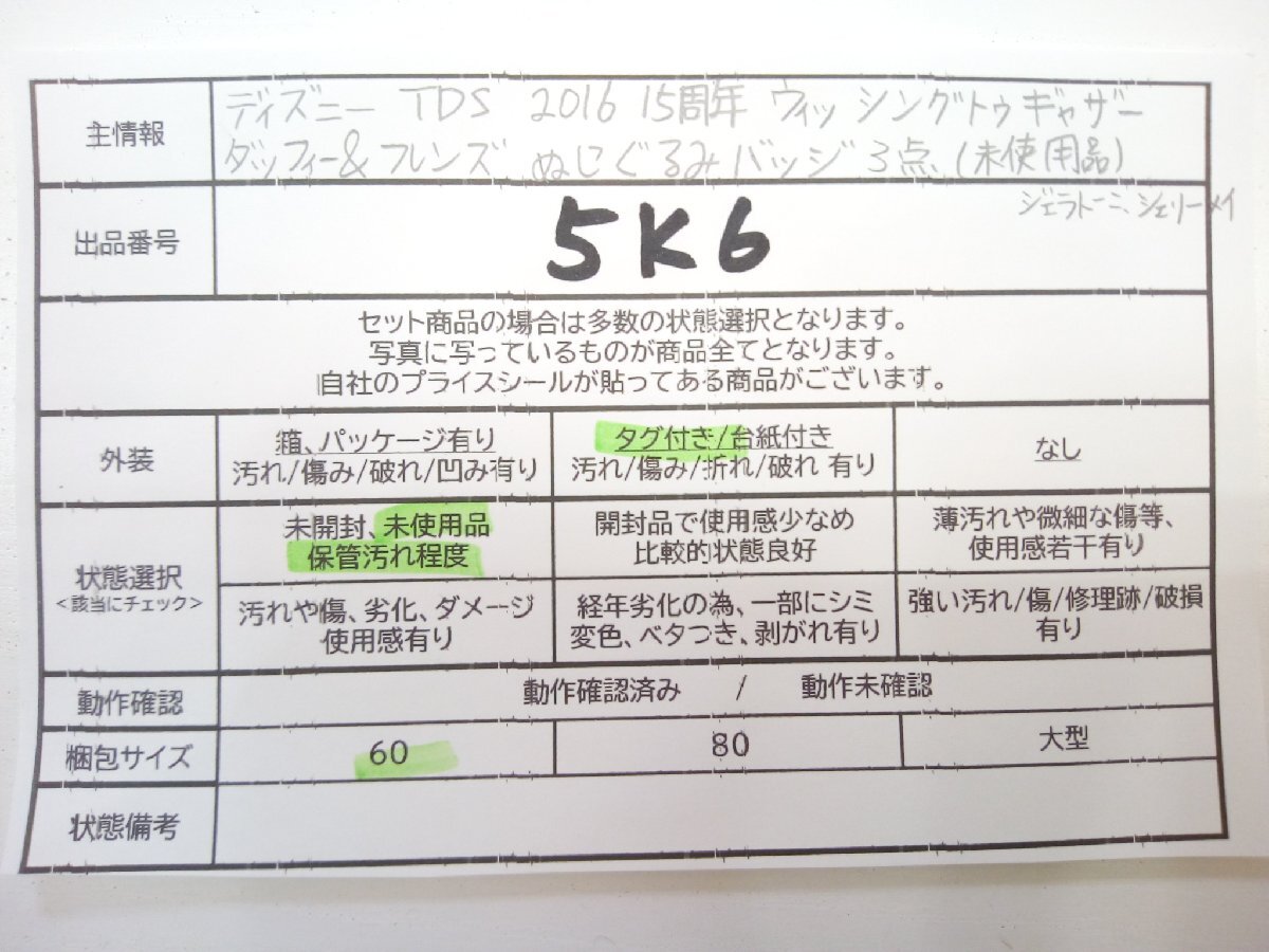 A:未開封、タグありの美品、埃程度の汚れが御座います。