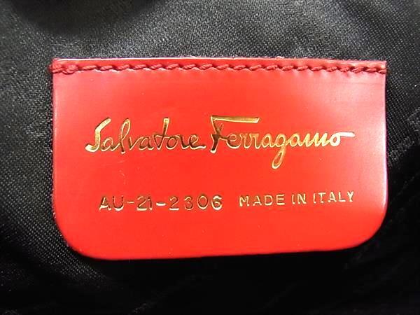 1円 Salvatore Ferragamo フェラガモ ガンチーニ パテントレザー ワンハンドル ハンドバッグ ミニバッグ 肩掛け レッド系 FV0308