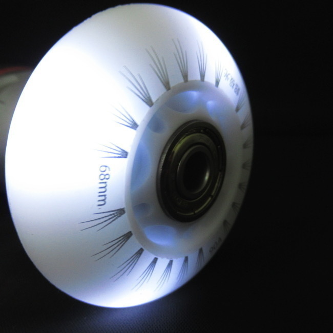 サイズ68mmのリップスティックデラックスミニやローラーブレード、リップスター、リップスターブライト等にも使える交換用互換ウィール2個1セットです。※ラングスジャパン社の製造または販売する純正品では御座いません。電池不要で回転するとピカピカと光ります。