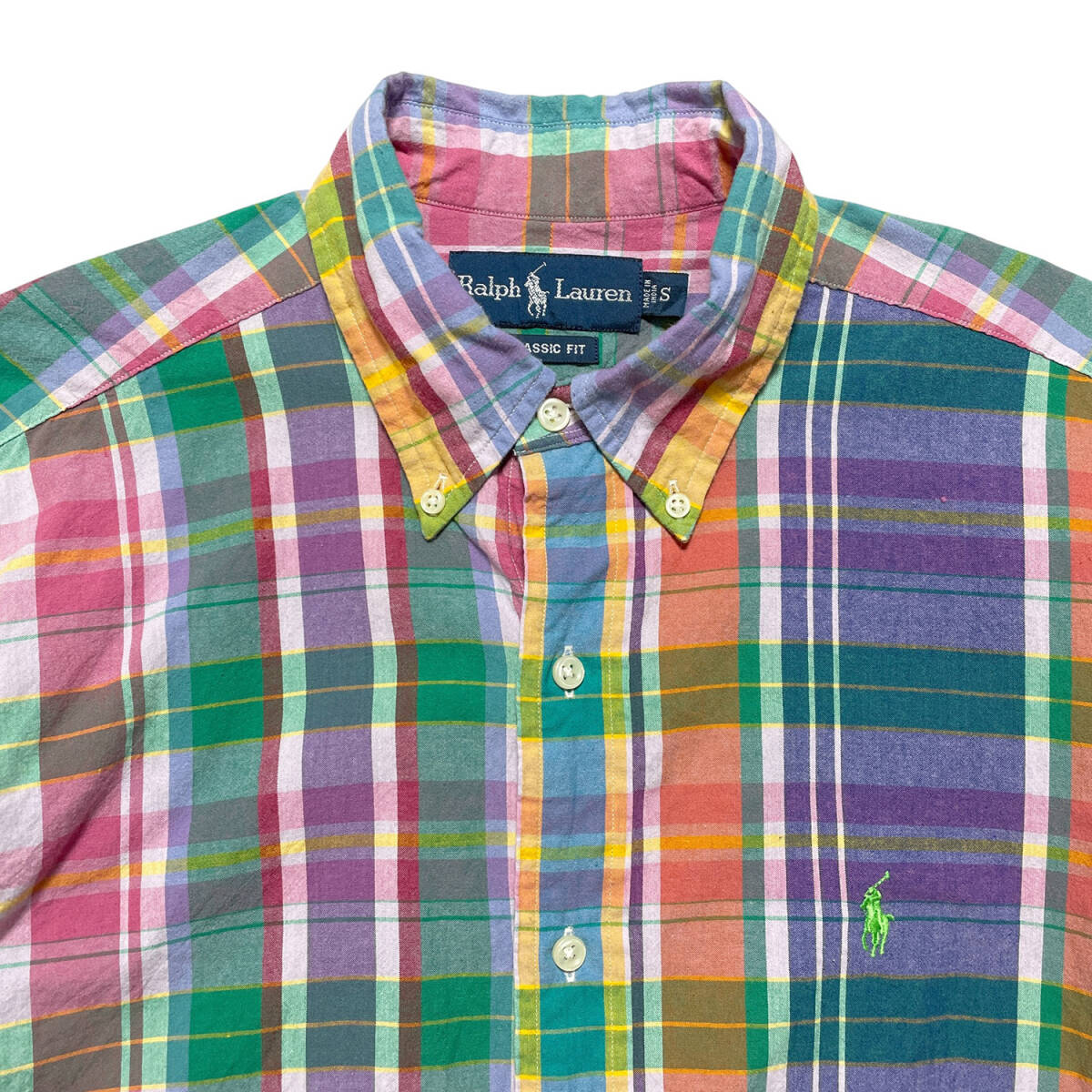 USA 古着 Ralph Lauren ラルフローレン コットン マドラスチェック柄 長袖シャツ BDシャツ ボタンダウン メンズS BG0959
