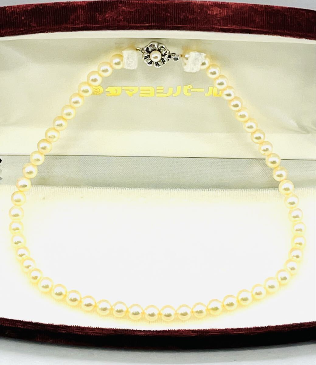 ◎1円◎ タマヨシパール 本真珠 ネックレス シルバー 留め具 冠婚葬祭 真珠パールネックレス 約6ミリ玉 ケース入り保証書付★同梱不可co