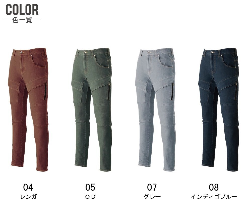 特長:ダブルストレッチ/コインポケット/マジックテープ付カーゴポケット/ファスナー付ダブルポケット
