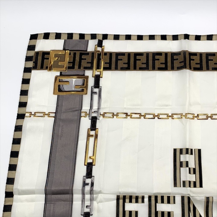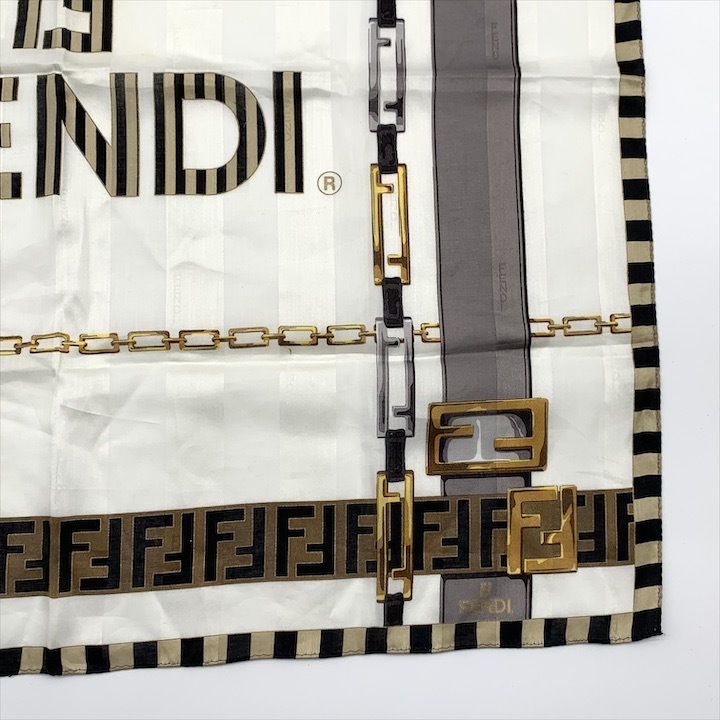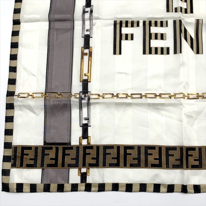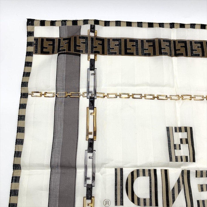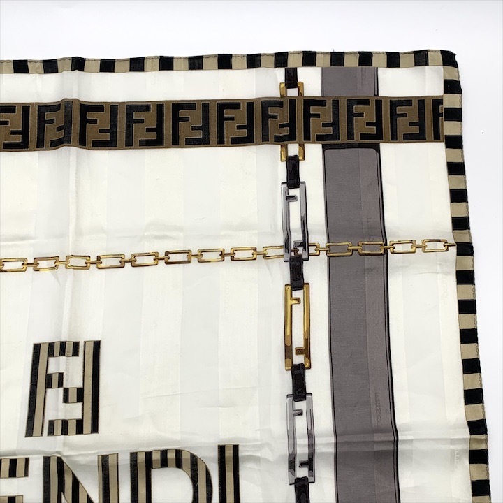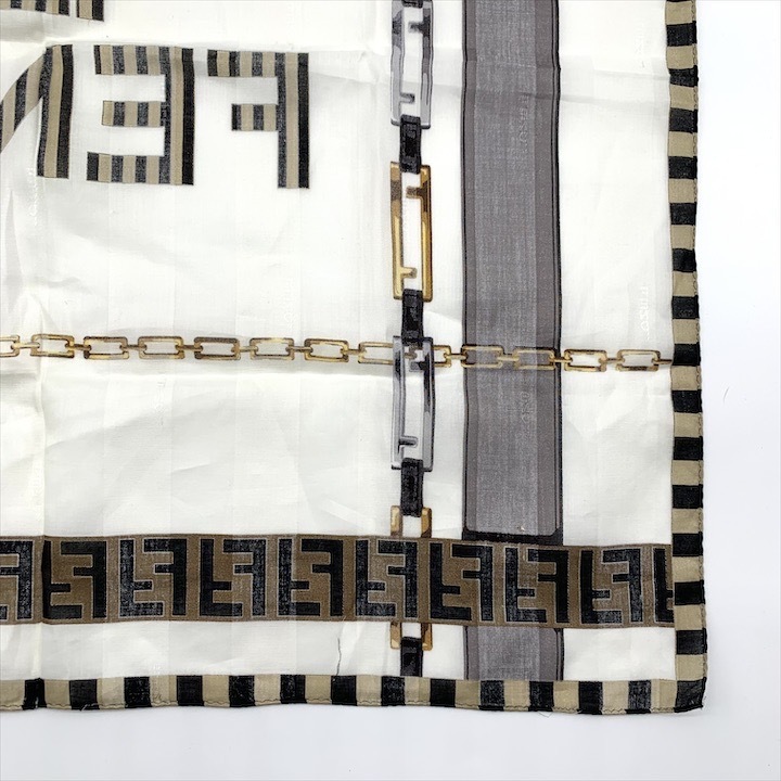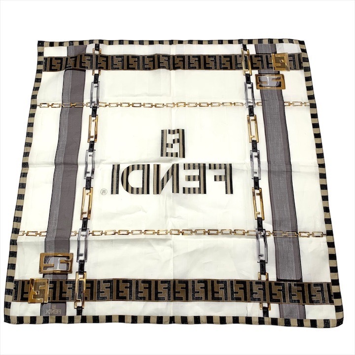 美品 FENDI フェンディ 大判 スカーフ ハンカチ チェーン ロゴ ズッカ ブラウン ホワイト 服飾小物 m15020 | |||