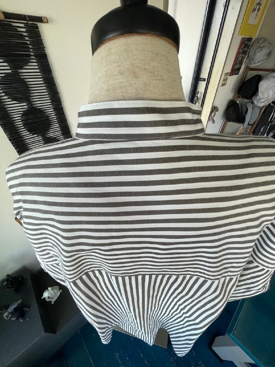 ゆったりとしたシルエットに爽やかなストライプ柄で上品さをプラス