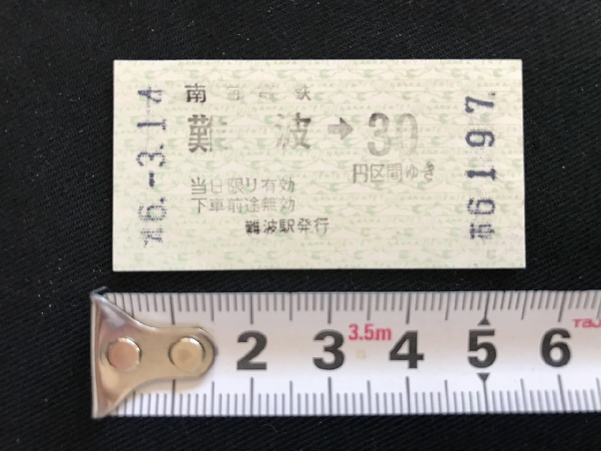 i☆* 古い切符 昭和46.3.14 南海電鉄 難波 から 30円区間 難波駅発行 乗車券 軟券 1点 207/C05