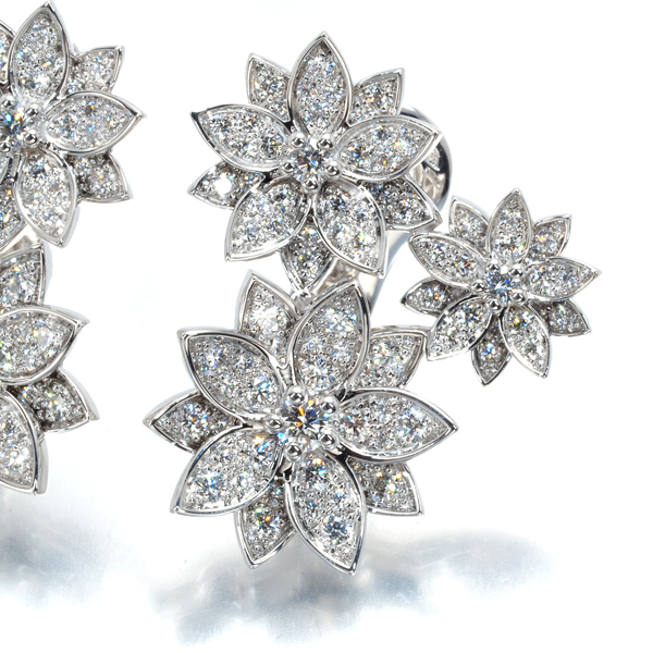 蓮の花から着想を得て誕生した『ロータス』コレクション。DEFカラー、IF~VVSクラリティを厳選した極上ダイヤモンドを贅沢にかつ素晴らしいセッティングであしらったラグジュアリーな逸品です。 |