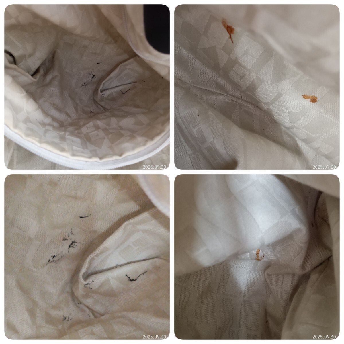 ・内部やポケット内に赤や茶色や黒・青の汚れあります。