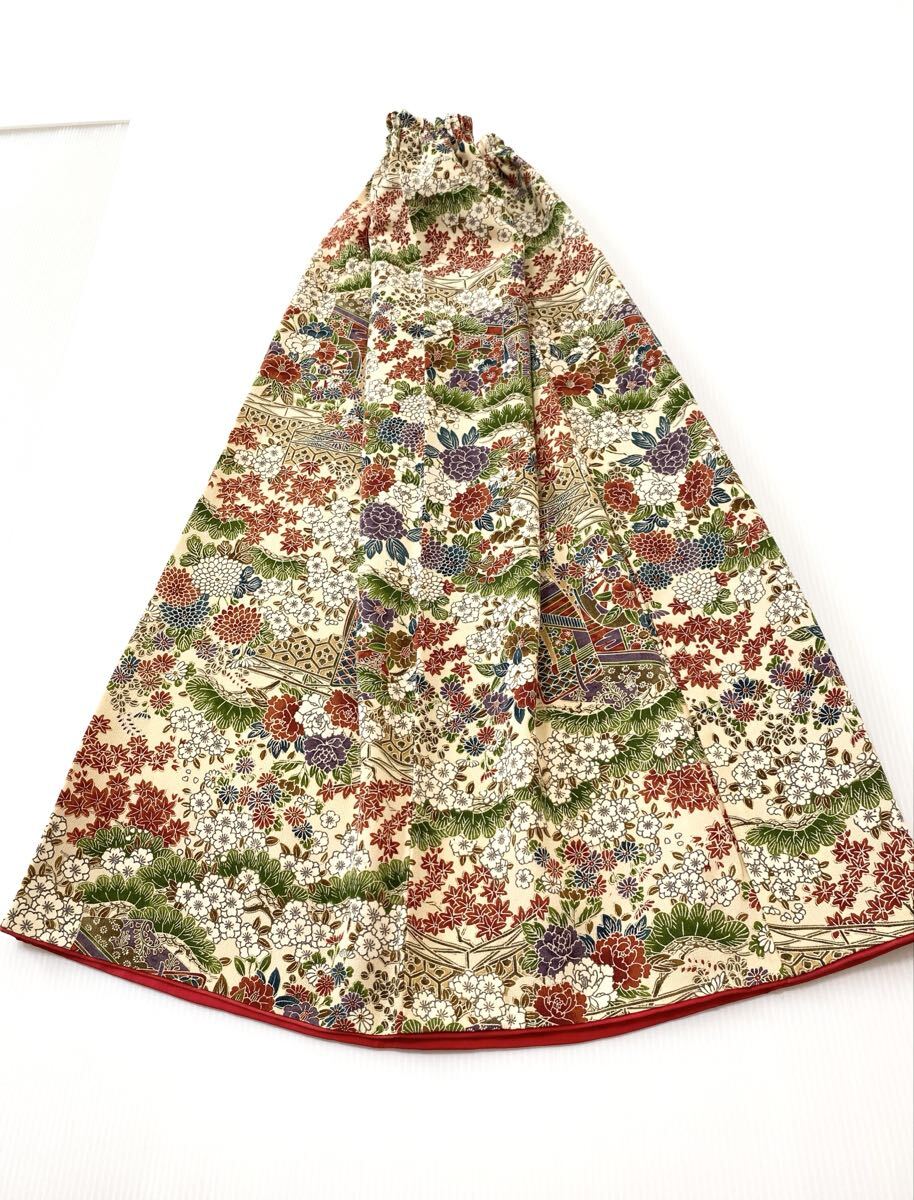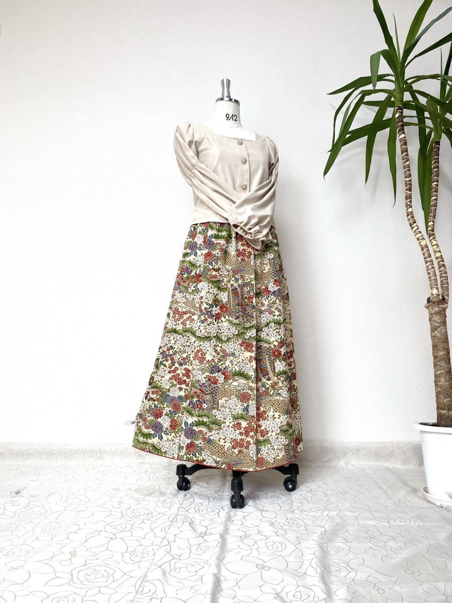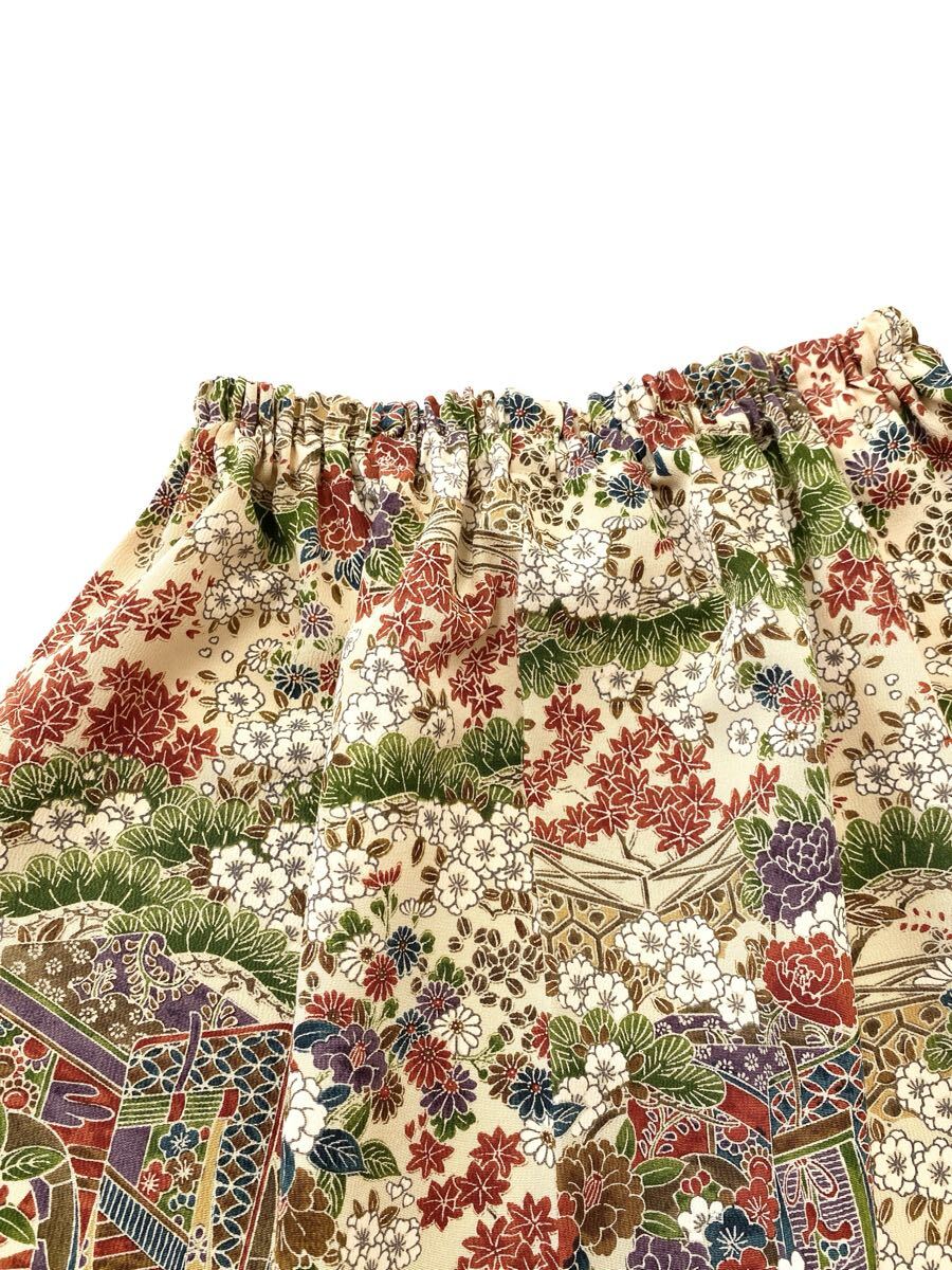 着物をリメイクして作製したウエストゴムロングドレススカートフリーサイズです
