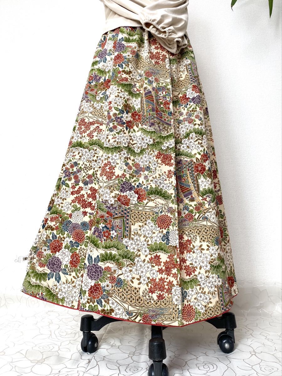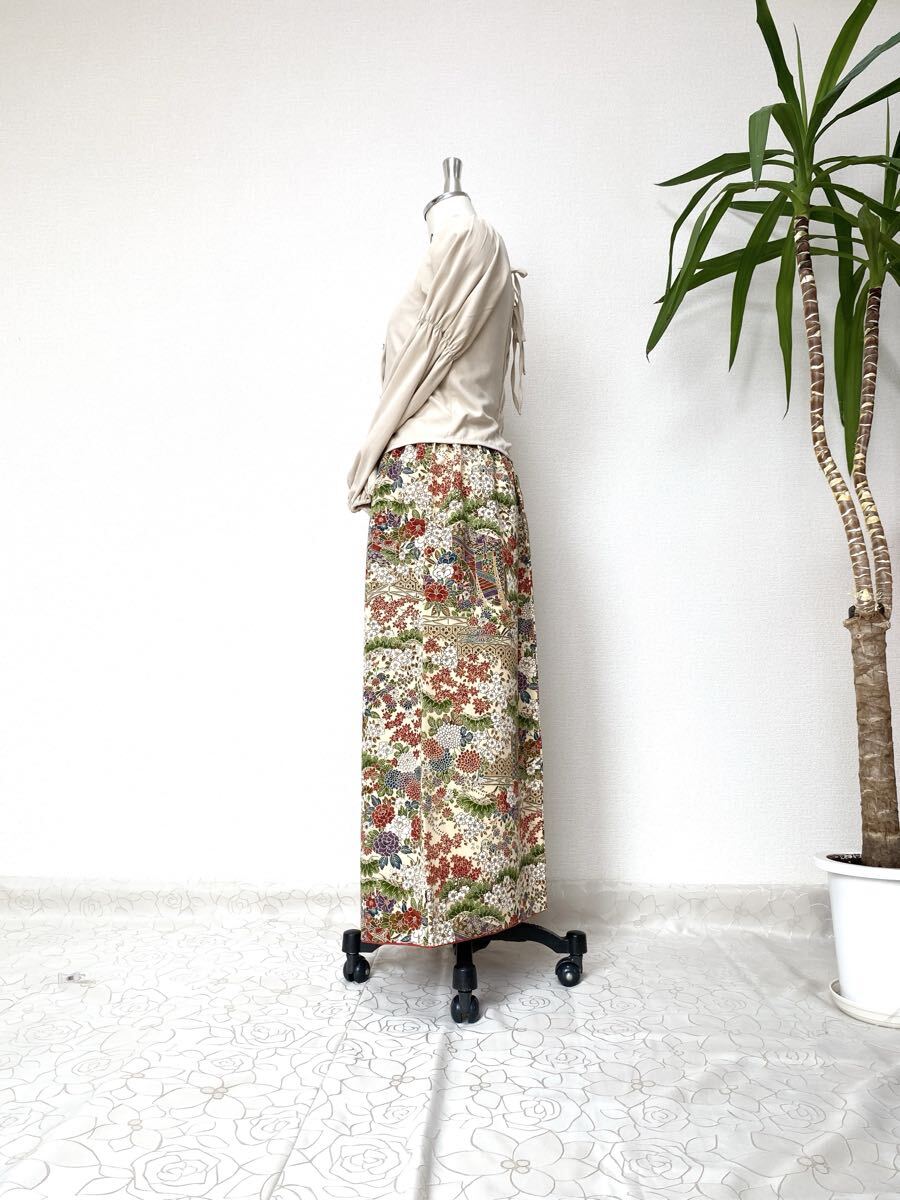 大人可愛い着物リメイクウエストゴムロングスカートフリーサイズ