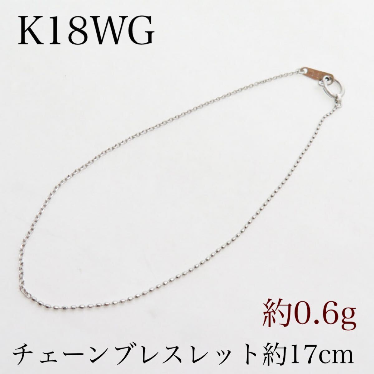 【本物保証】K18WG ホワイトゴールド アズキ&ボールチェーン ブレスレット 約17cm 約0.6gおしゃれ 展示処分品 お買い得