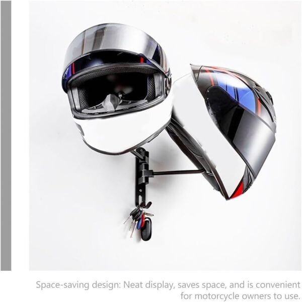 ヘルメットだけでなく、バイクジャケット、帽子、スカーフなど様々なアイテムを掛けることができ、整理整頓に便利です。