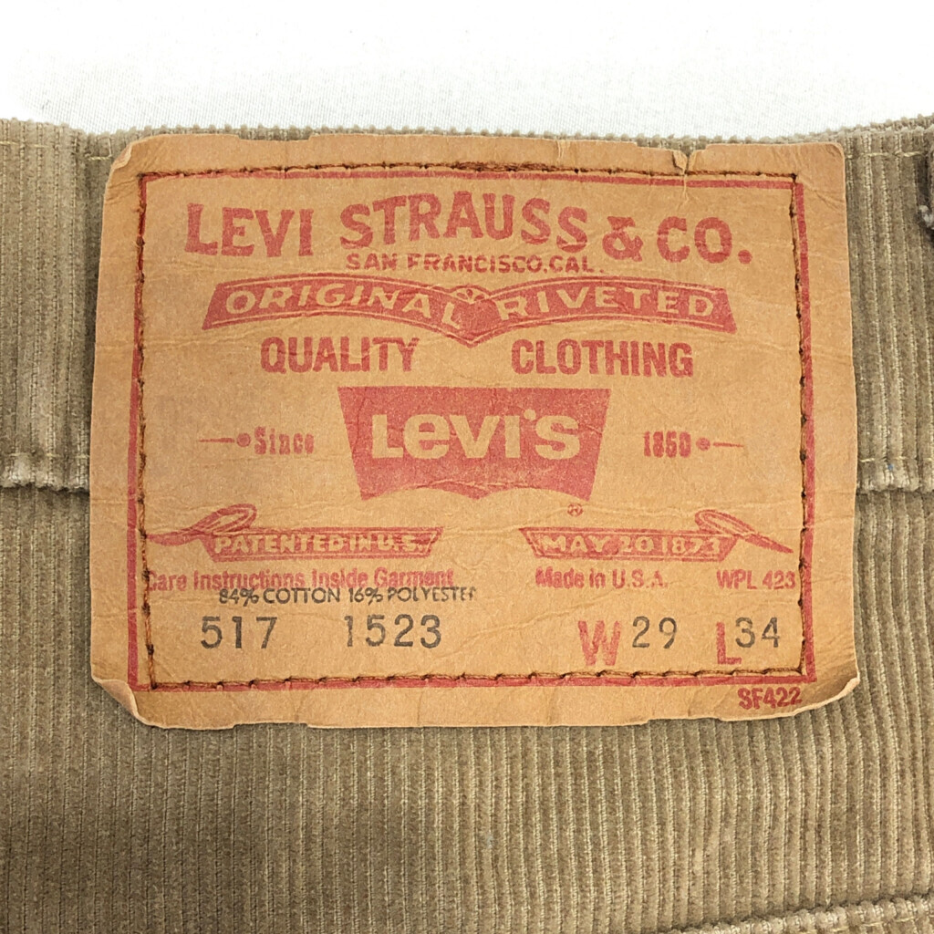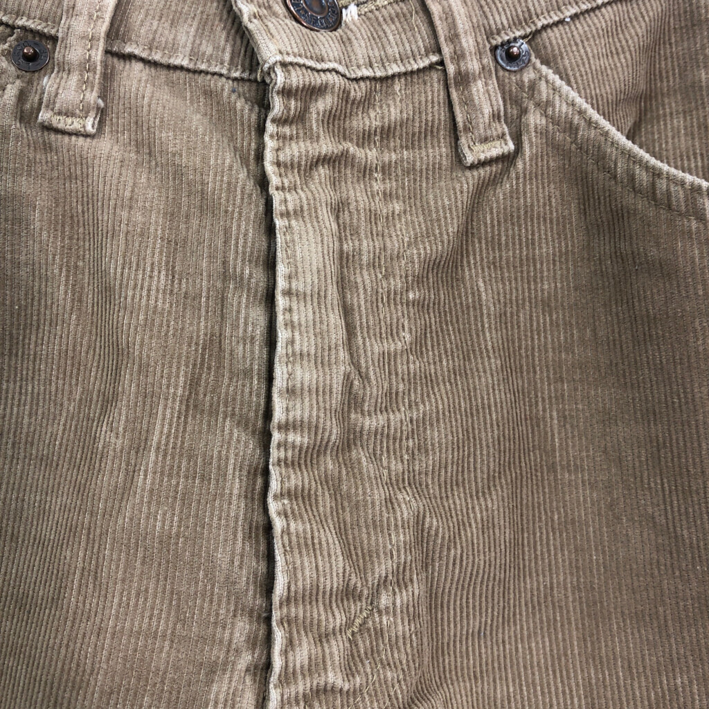 [商品管理番号] R9948 [ブランド] Levi's/リーバイス [サイズ] W29 L34 [実寸サイズ] ウエスト:約72cm 股上:約27cm 股下:約76cm わたり幅:約26cm 裾幅:約22cm [主な素材] 表地 : コットン [色] ブラウン [仕様] 生産国 : USA製 70年代 コーデュロイ 517-1523 [状態] 汚れ:ポケット内 キズ:股、ひざ 特記事項:使用感あり、色褪せ | |||