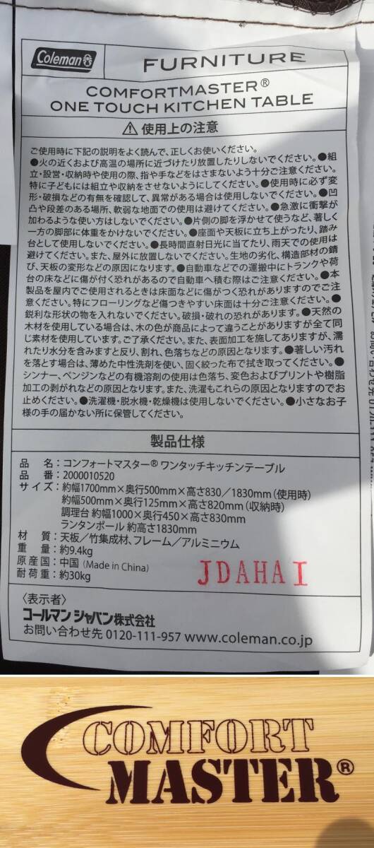 ◎ Coleman コールマン コンフォートマスター ワンタッチ キッチン テーブル 2000010520 アウトドア用品 5-101
