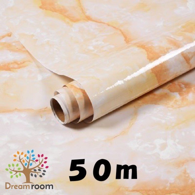 【 50m 】 大理石模様 ベージュ×橙 B10 壁紙 シール 61cm幅 DIY 防水 カッティングシート クロス 糊付き ウォールペーパー
