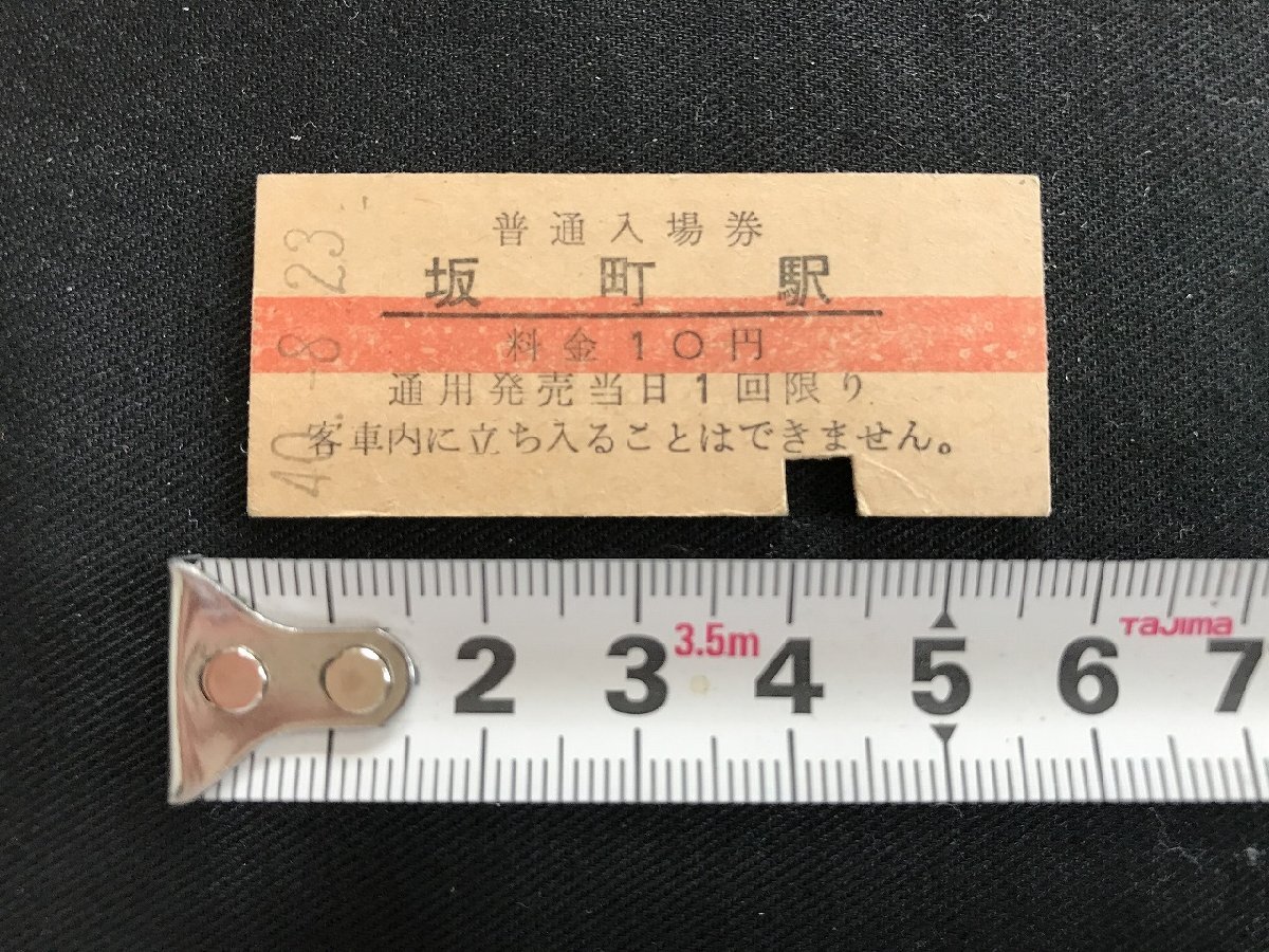 i☆* 古い切符 昭和40.8.23 坂町駅 普通入場券 10円 硬券 下入鋏 1点 191/C05
