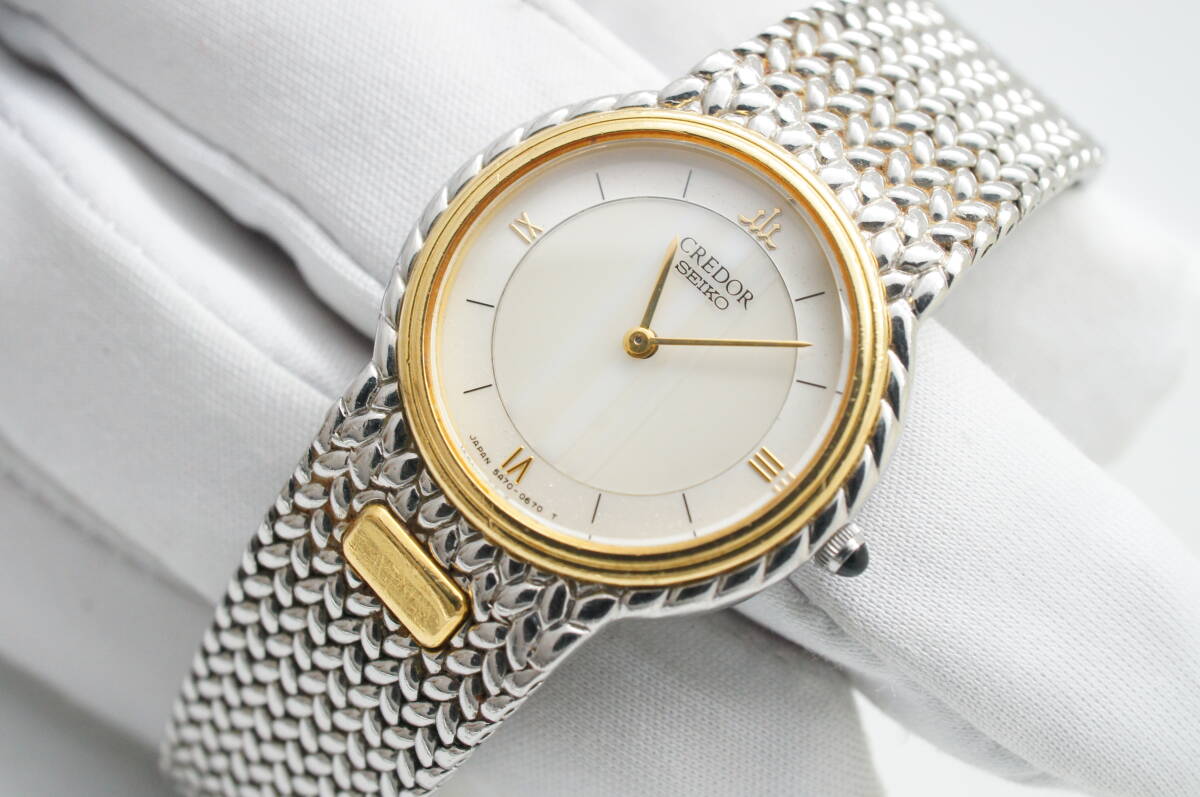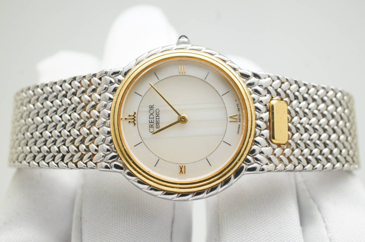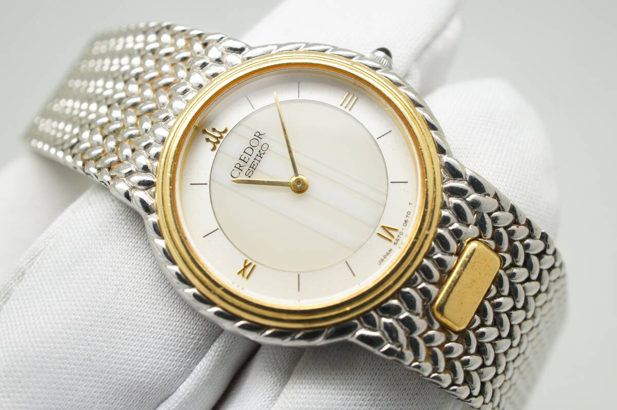 Z117●作動良好 美品 SEIKO セイコー CREDOR クレドール 18KTベゼル 5A70-0270 ラウンド型 レディース腕時計 コンビ お洒落 クォーツ