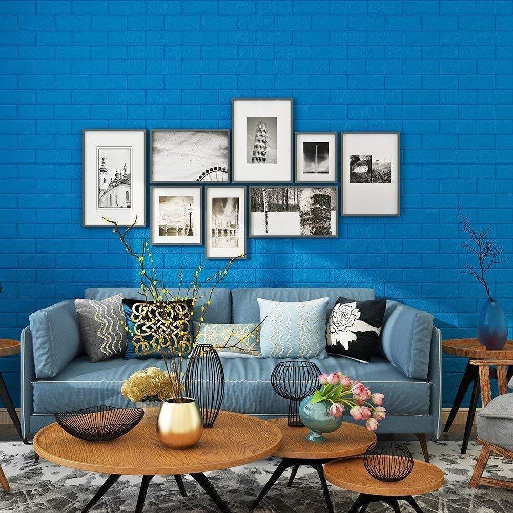 【50枚】高品質 3D クッション 壁 シール マリンブルー/青 レンガ調 糊付き リメイク 70×77cm 耐水 抗菌 傷防止