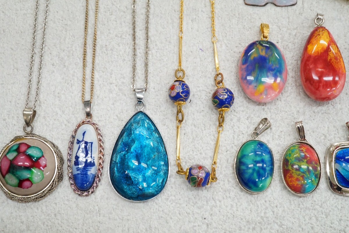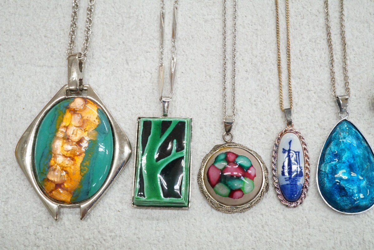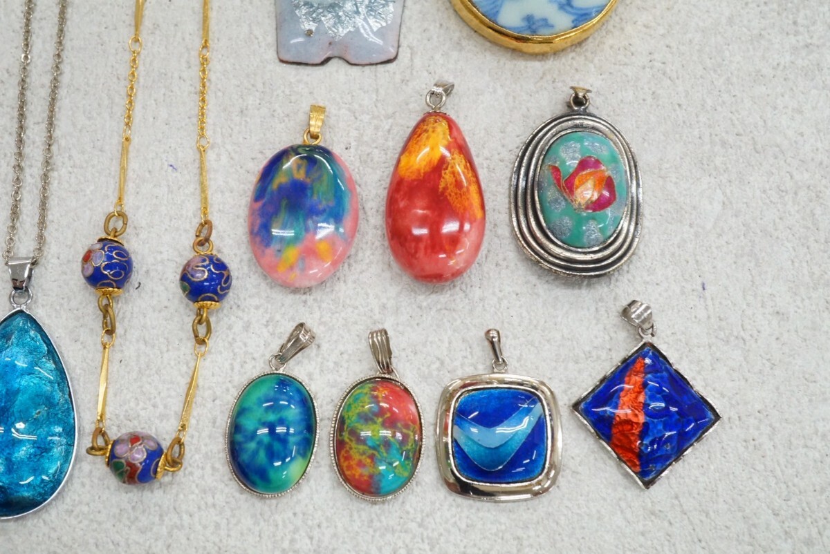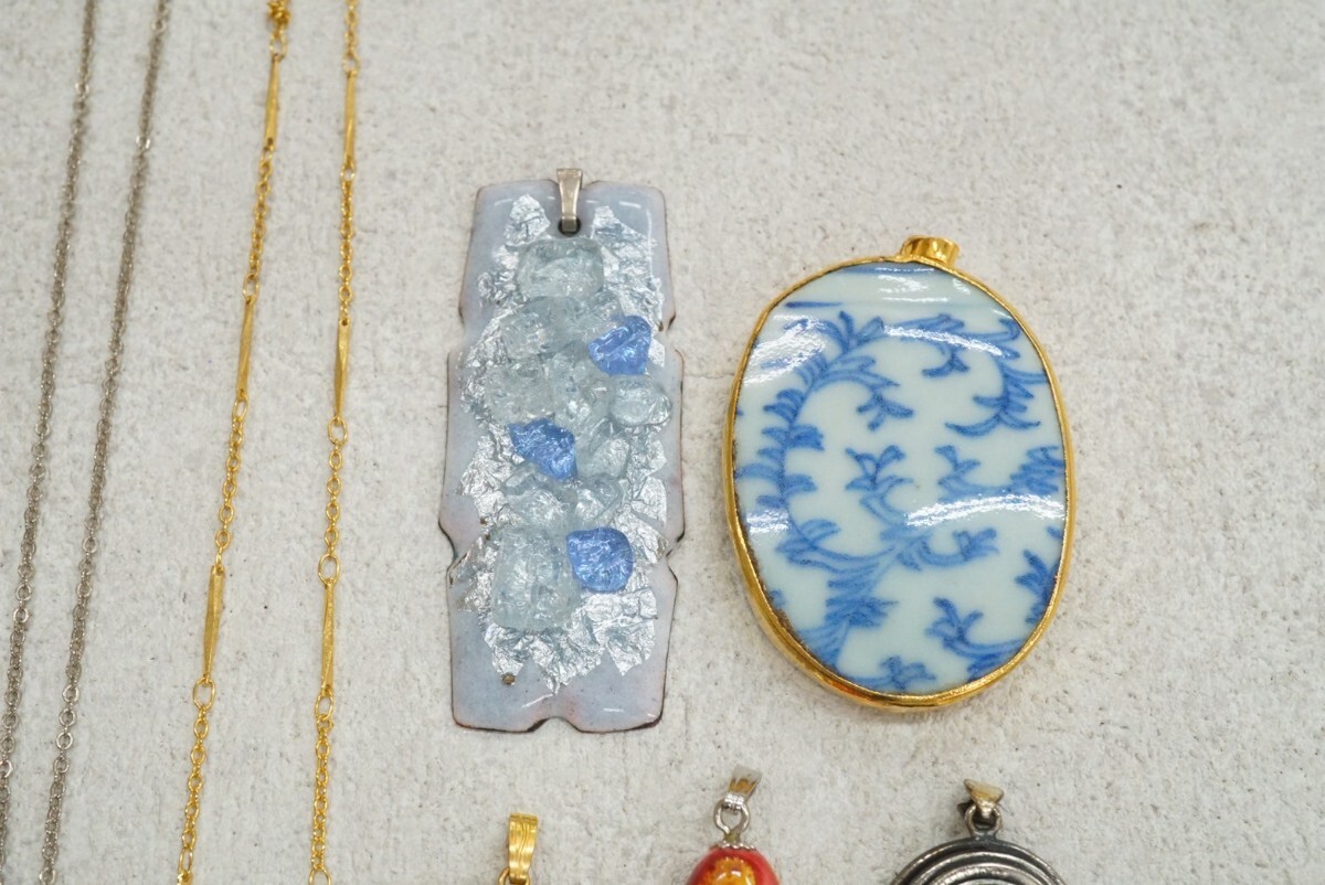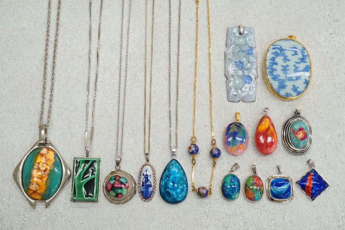 C153 九谷焼 七宝焼など ネックレス ペンダン 15点セット 陶器 焼き物 ヴィンテージ アクセサリー 大量 まとめて おまとめ まとめ売り