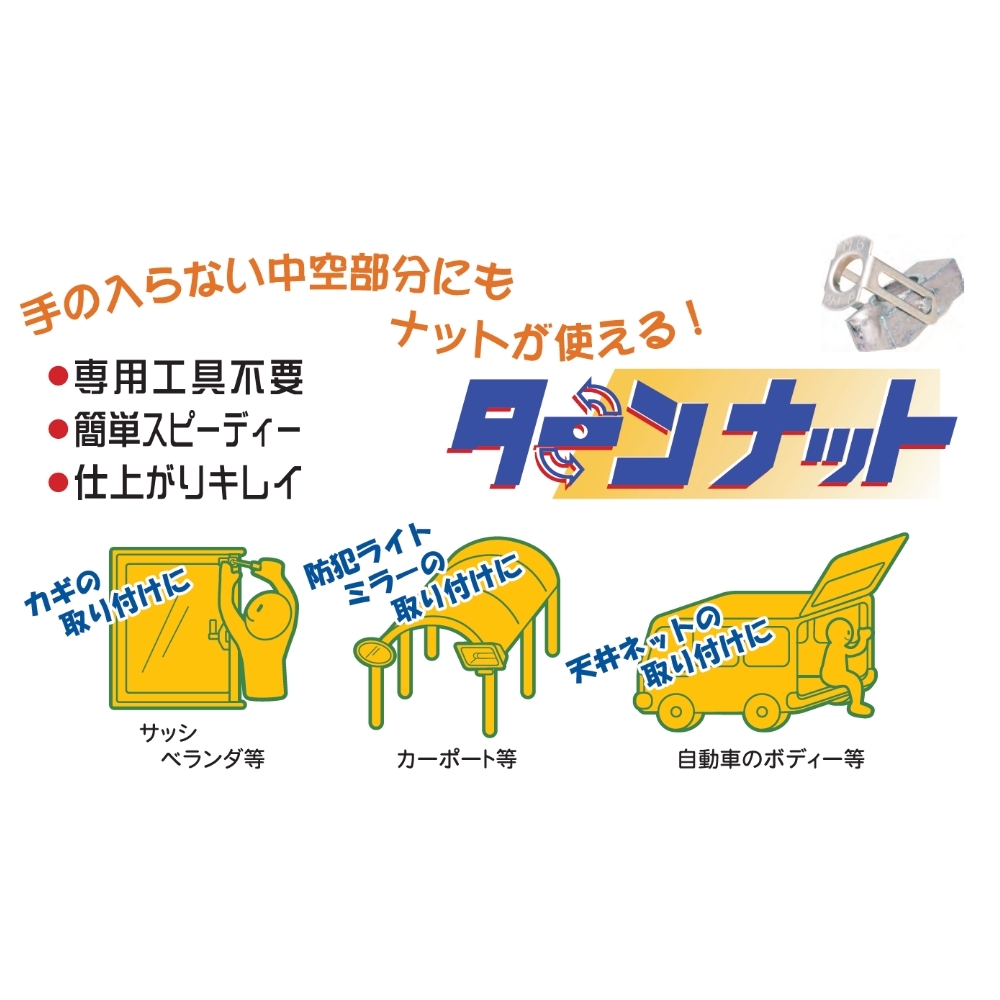 自動車ボディの内装軽量部品固定/スチール家具・OAデスク/サッシ・ドア/カーポート・ベランダなど、手が入らない中空材・箱モノ・パイプへの後付けねじ座に。