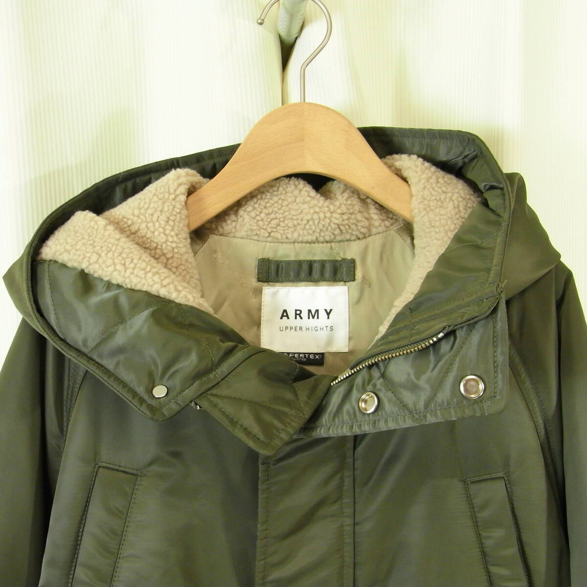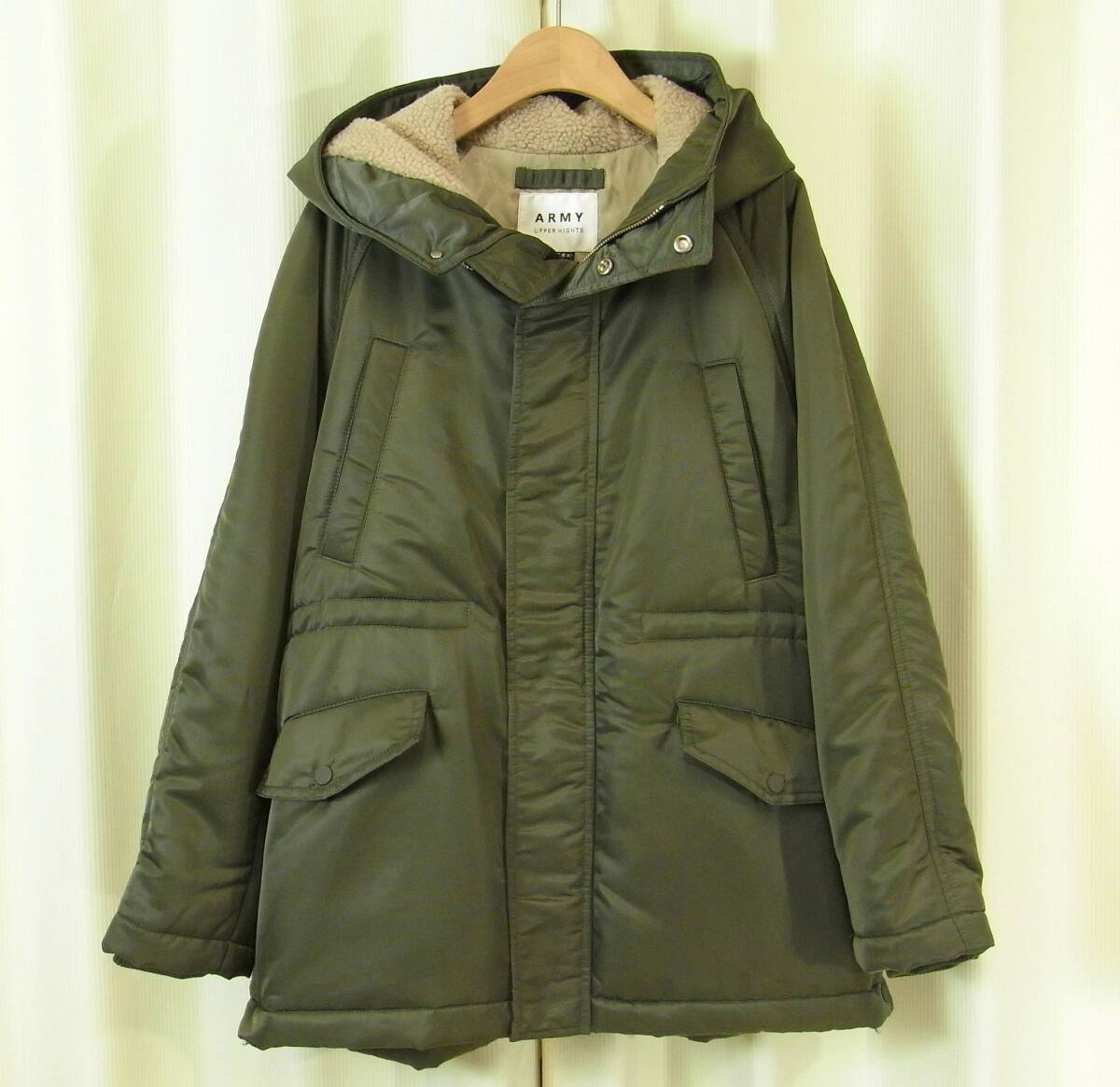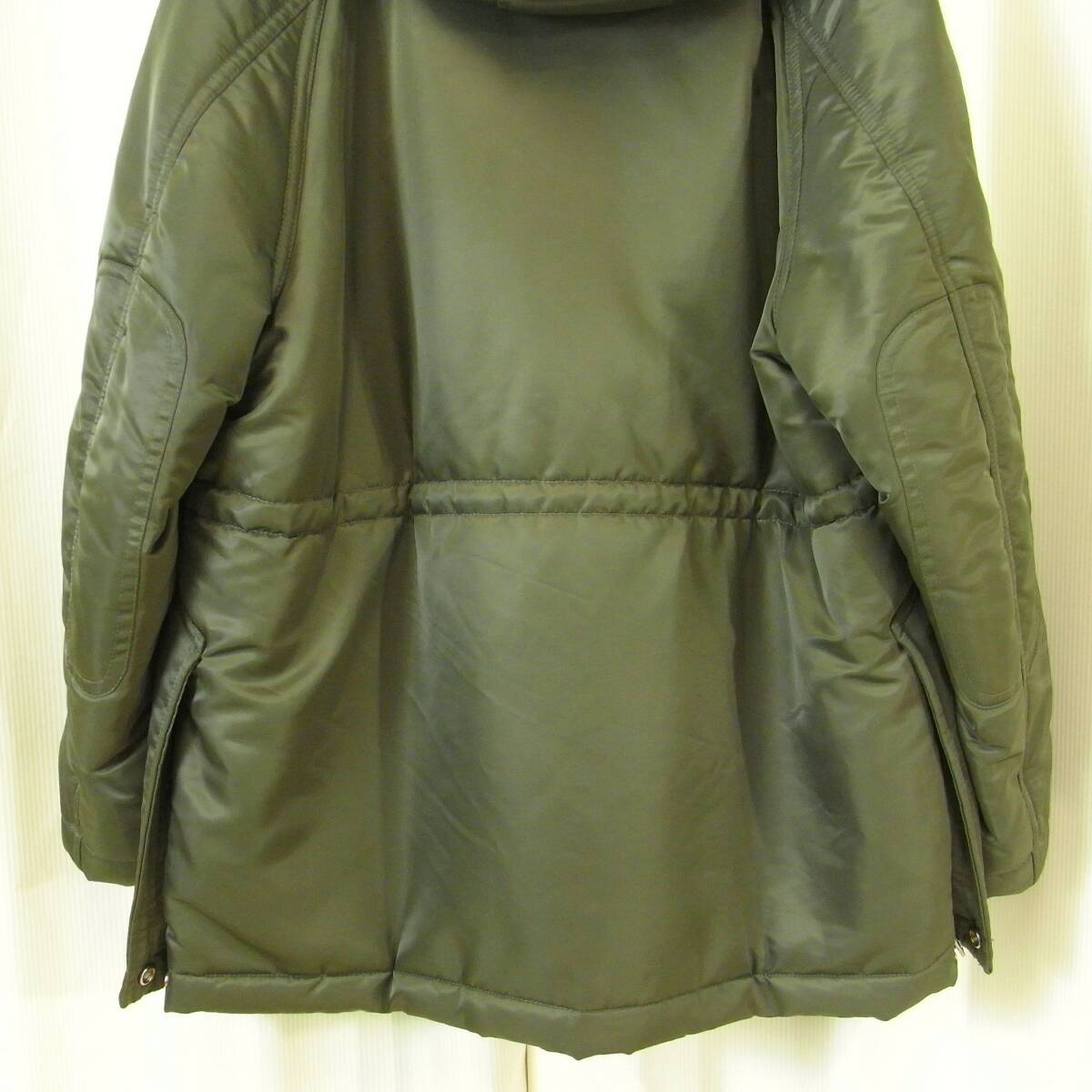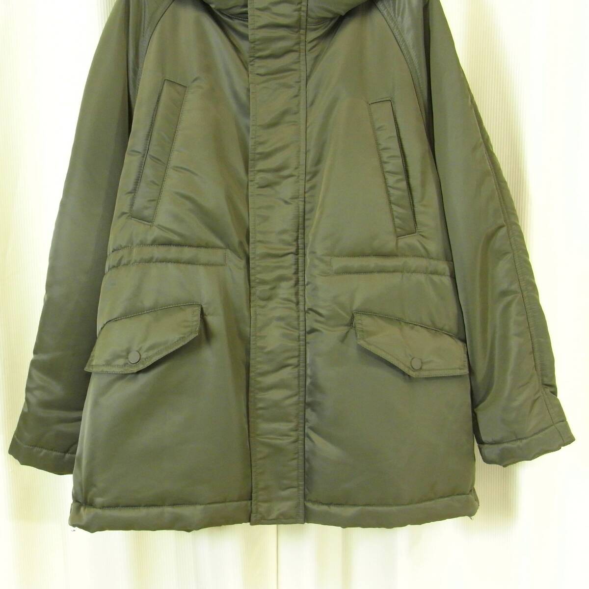 upper hights アッパーハイツ モッズコート 中綿入りナイロンジャンパー カーキ サイズ1 シンプルな形のモッズコートです。 合わせやすいカーキのお色です。 丈夫なナイロン素材で、暖かな中綿入りになります。 両サイドのすそにスリットが入っており、チャックで開閉できます。 またウエストの絞り具合を内側のヒモで調整できます。 袖は中にリブがあり、より暖かく着ていただけると思います。 寒い時期にいかがでしょうか。 丈:約76センチ 身幅:約68センチ(脇の下) 表地 ナイロン100% 裏地 ポリエステル52% レーヨン48% リブ ポリエステル80% ナイロン18% ポリウレタン2% 中綿 ポリエステル100% | ||