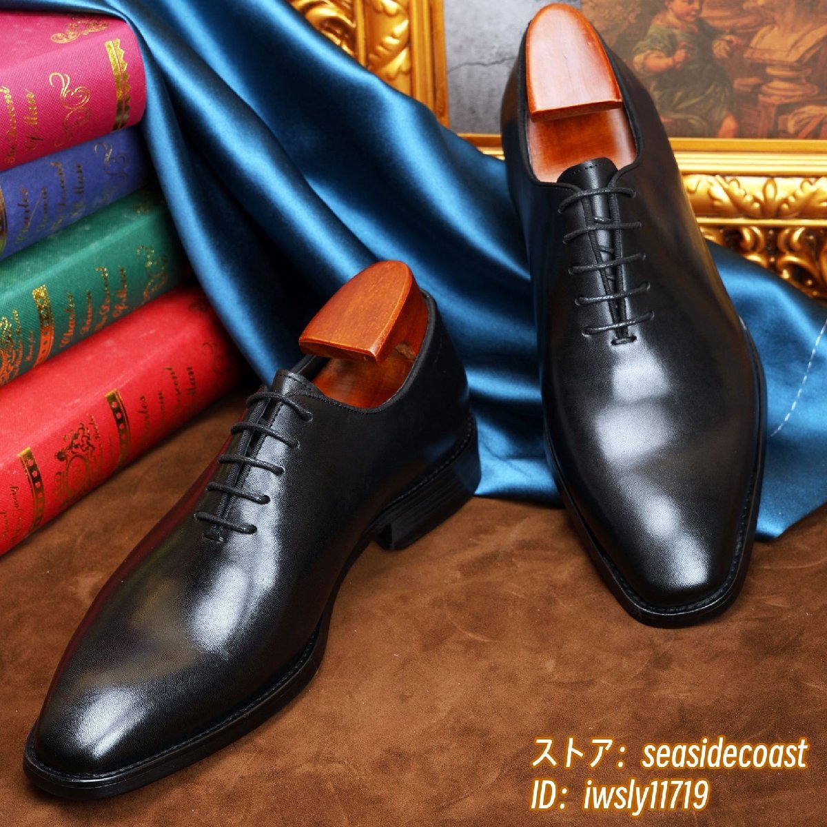 入手困難■最高級 ビジネスシューズ メンズ 本革 レザーシューズ 職人手作り 紳士靴 シンプル 革靴 超希少 大人気 牛革 ブラック 24.5cm