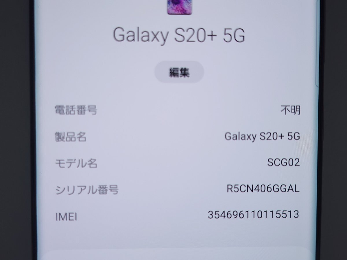 ★【62455WM】 完動品 au SCG02 SAMSUNG Galaxy S20+ 5G コスミックグレー 1円 ! 1スタ !