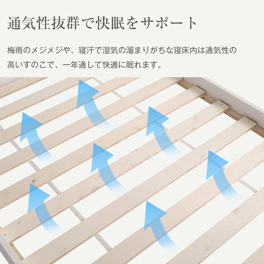 通気性抜群で快眠をサポート 梅雨のメジメジや、寝汗で湿気の溜まりがちな寝床内は通気性の高いすのこで、 一年通して快適に眠れます。