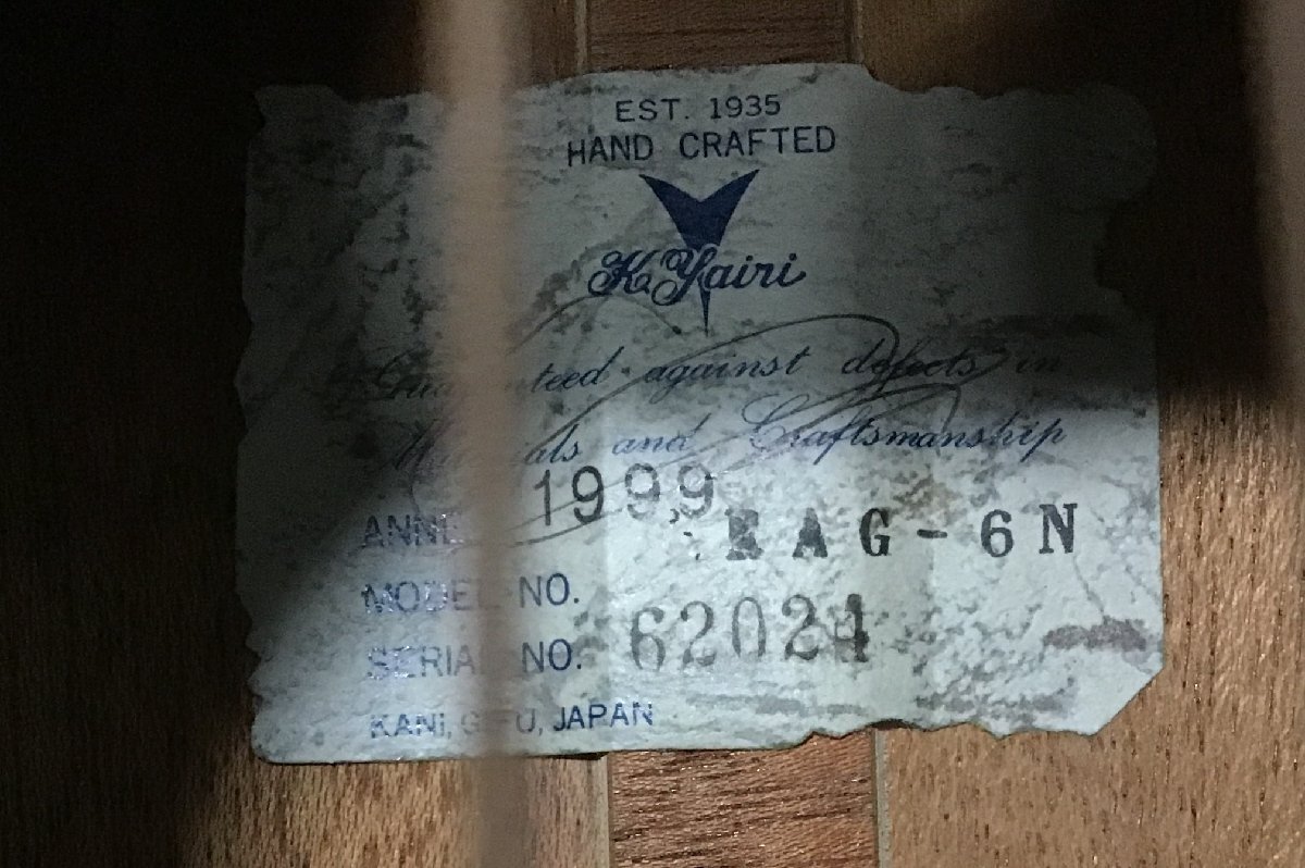 管理番号Ec7642【中古】K.Yairi/RAG-6N アコギ ヤイリ 日本製 ノーメンテ 現状渡し